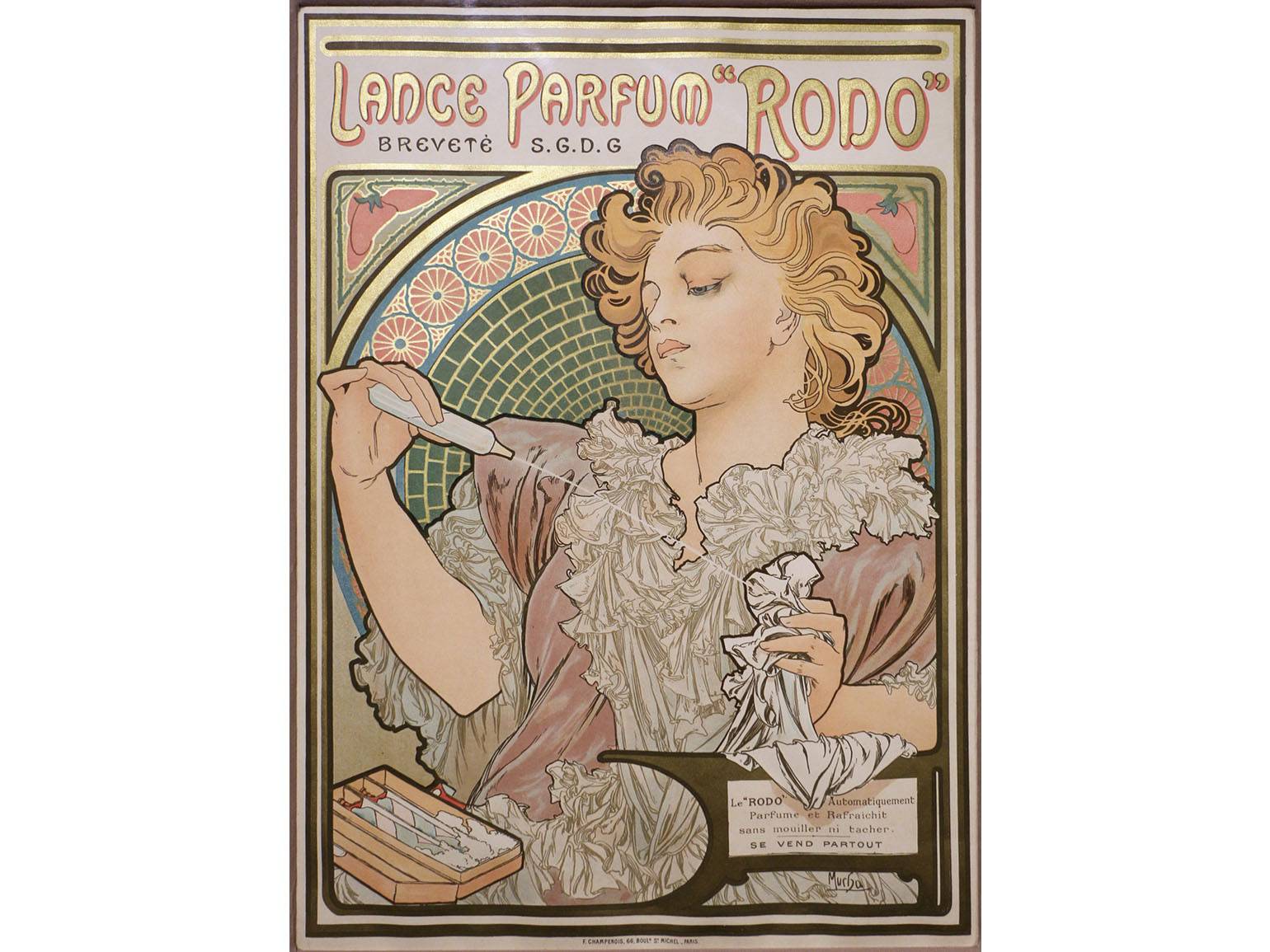 Рекламная графика. После успеха с Сарой Бернар Муха начал сотрудничать с брендами: JOB, Ruinart, Nestlé, Idéal Chocolat, Moët & Chandon. Он создавал не только рекламные плакаты, но и декоративные панно для интерьеров.