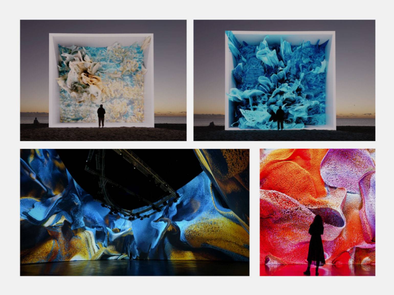 Сюрреалистичные 3D-объекты, жидкое стекло, смешение техник и ребусы.