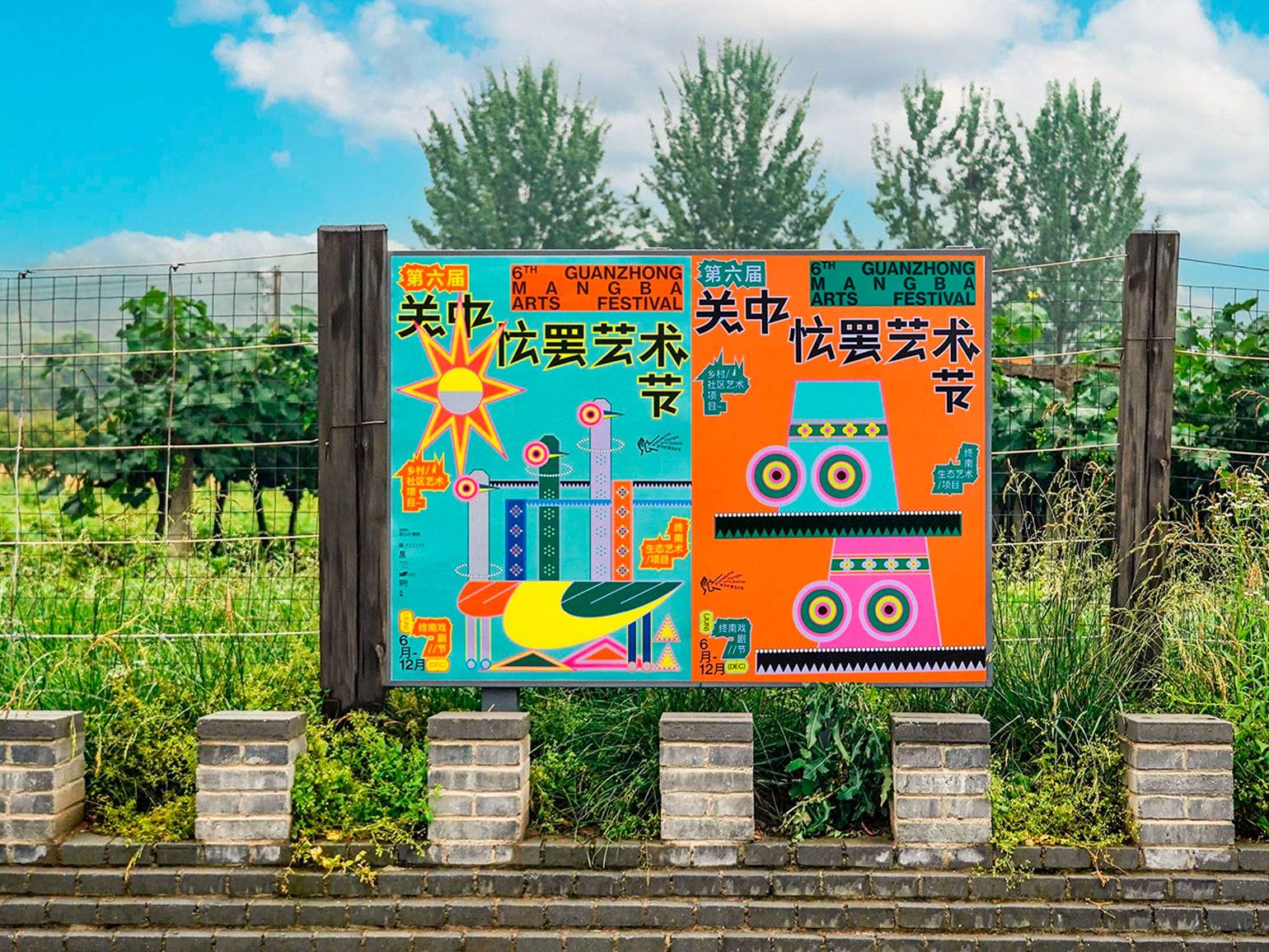 Яркий пример — команда Untiled Macao разработала брендинг фестиваля сельского искусства Guanzhong Mangba Arts Festival. Это переплавка «сельских воспоминаний» в яркие современные ритмы. Стилизованные персонажи гипнотизируют своей наивно простой формой и круглыми глазами. Контрастные цвета пульсируют на каждом носителе. Меня очень вдохновляет этот «сельский рейв».
