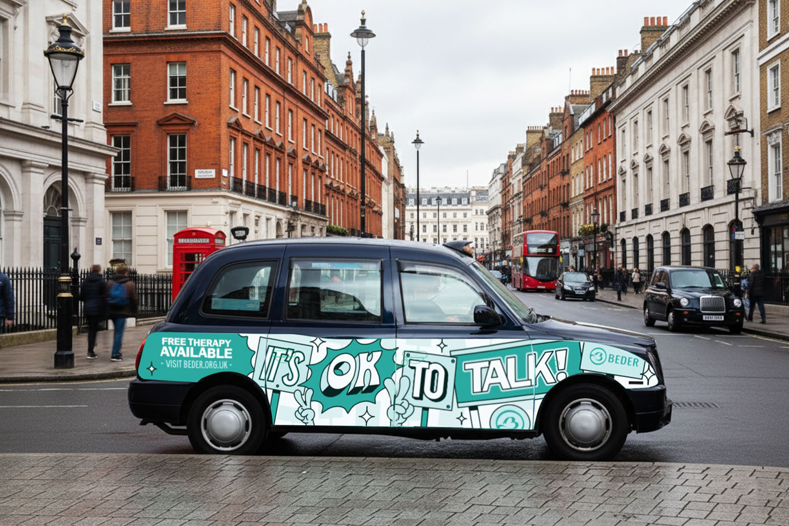 В отличие от статичных билбордов или цифровых объявлений, которые легко пролистать или проигнорировать, брендированные кэбы становятся частью городской среды. Внутри каждого автомобиля разместили QR-код — его можно отсканировать, чтобы узнать о программе Beder Therapy Vouchers. Организация в партнёрстве с платформой Meela предоставляет бесплатный доступ к шести 50-минутным терапевтическим сессиям.