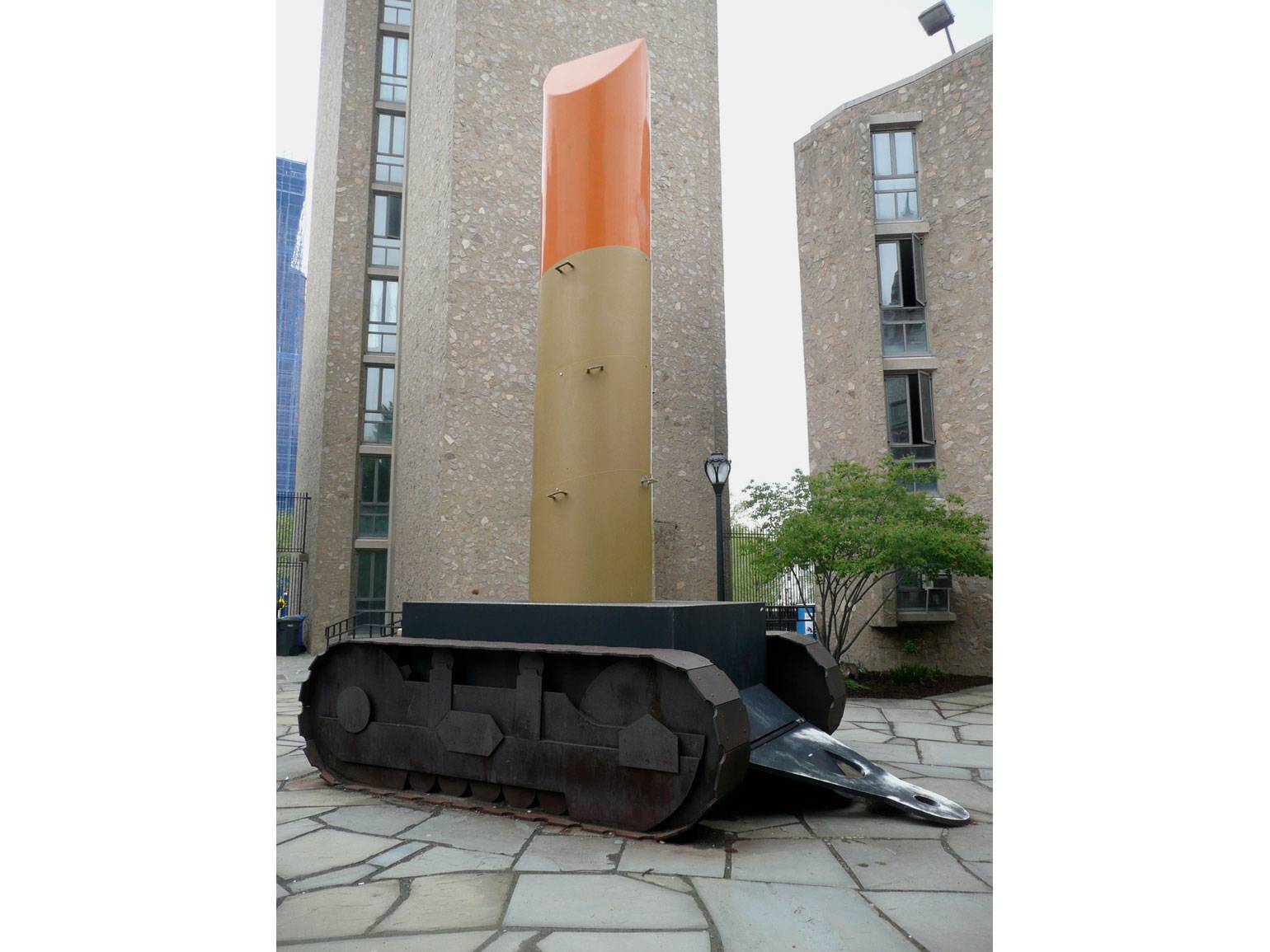 Сначала это были просто концепции, но он всегда хотел делать большой паблик-арт. Начал в 1969 году — его знаковая работа Lipstick (Ascending) on Caterpillar Tracks была установлена в Йельском университете. Это была студенческая инициатива, а Олденбург не взял за работу денег. Она отражала настроения конца шестидесятых: антивоенные и борьбы за права женщин (только осенью этого года женщин допустили поступать в этот университет).