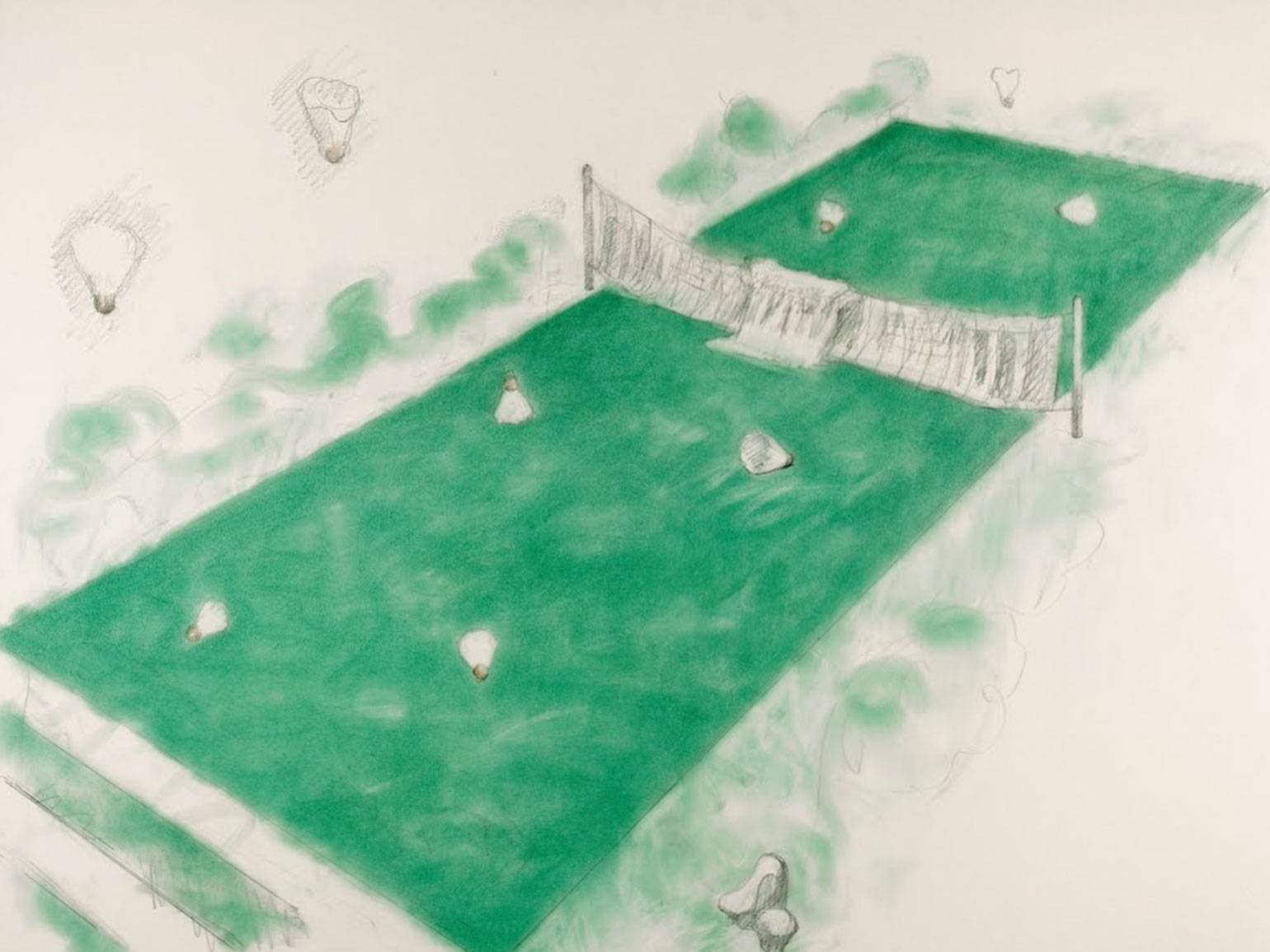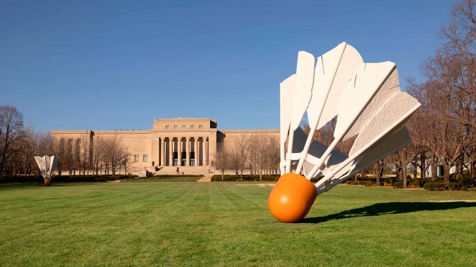 На лужайках Художественного музея Нельсона-Аткинса в Канзас-Сити размещены четыре «воланчика». Высотой 5,8 метра, в диаметре — 4,87 метра, каждый из гулливеровских воланов весит 2,5 тонны. Их разместили так, что музей получился сеткой для бадминтона, а газон — стал игровым полем. А воланы как бы упали по обе стороны от «сетки»-музея. Загадочная инсталляция посвящена природе искусства: это игра с неизвестными правилами, и ещё оно иногда попадает в музеи.