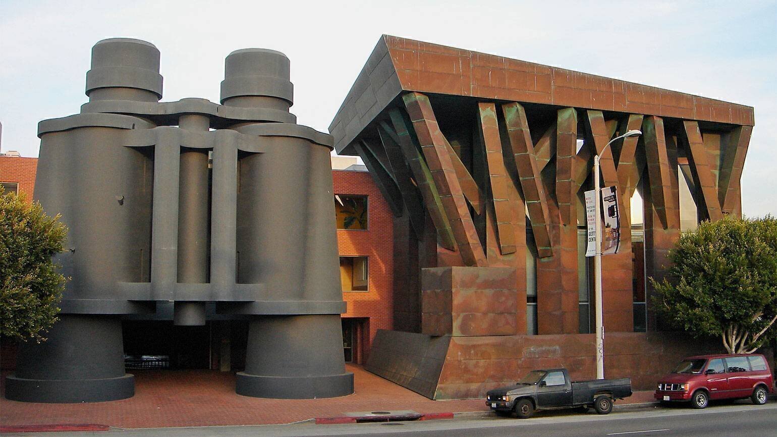 Однако они совсем не коннектились друг с другом, и легенда гласит, что Гери взял стоявший неподалёку макет проекта библиотеки и театра 1986 года Олденбурга и ван Брюгген в форме бинокля, и поставил его между своих макетов, чтобы показать, что здесь есть какой-то недостающий элемент. Случайная находка оказалась удачной: ироничное здание как нельзя лучше подошло разудалой рекламе начала девяностых. А в 2011 году здание стали арендовать Google: им бинокль тоже отлично вписался в концепцию продукта.