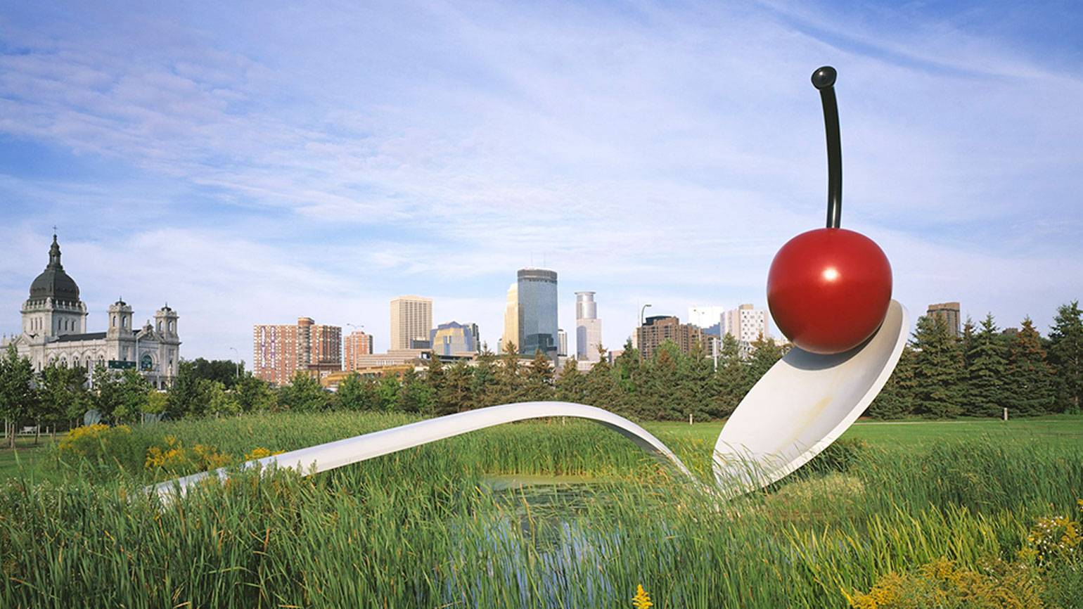Скульптурный фонтан Класа Олденбурга и Кошье ван Брюгген установлен в Саду скульптур в Миннеаполисе. Ложка и вишня изготовлены из алюминия на стальных каркасах и покрыты несколькими тщательно отшлифованными слоями эпоксидного состава. В основании черенка ягоды размещены клапаны, из которых вытекает вода, чтобы вишня блестела, а из стебля бьёт тонкая струя, которую Олденбург описывал так: «Это не струйка воды, а дымка. Она должна ловить солнечный свет и время от времени создавать радугу». Зимой скульптура покрывается снегом и становится похожа на мороженое.