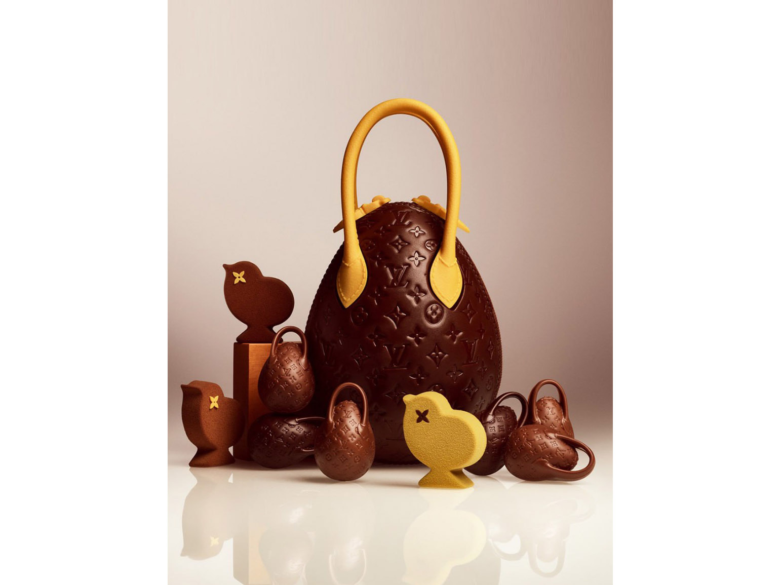 В прошлом году пасхальные сладости от Louis Vuitton оценивались достаточно дорого: центральный элемент коллекции, Chocolate Egg Bag, продавался примерно по 225 евро за экземпляр весом около килограмма, сделанный из тёмного и молочного шоколада с начинкой из пралине и орехов.