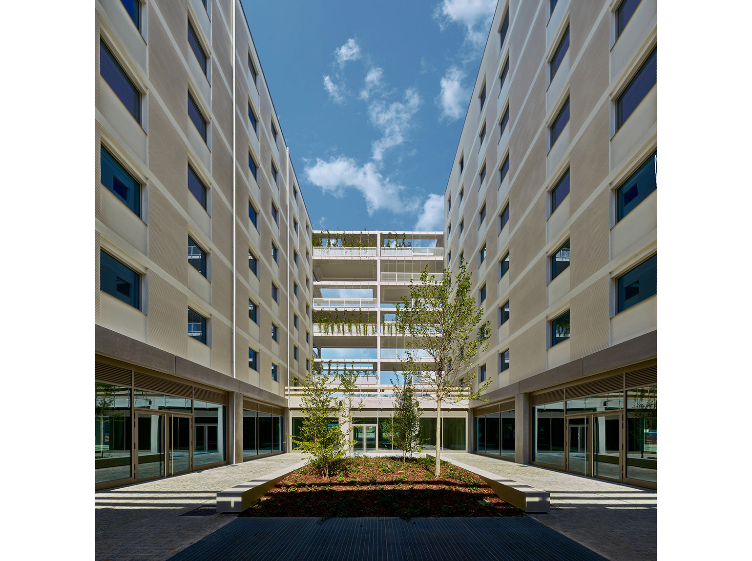 С обеих сторон кампуса предусмотрены общие террасы, которые станут местом встреч и обеспечат больше уединения для жилых блоков, выходящих на улицу.