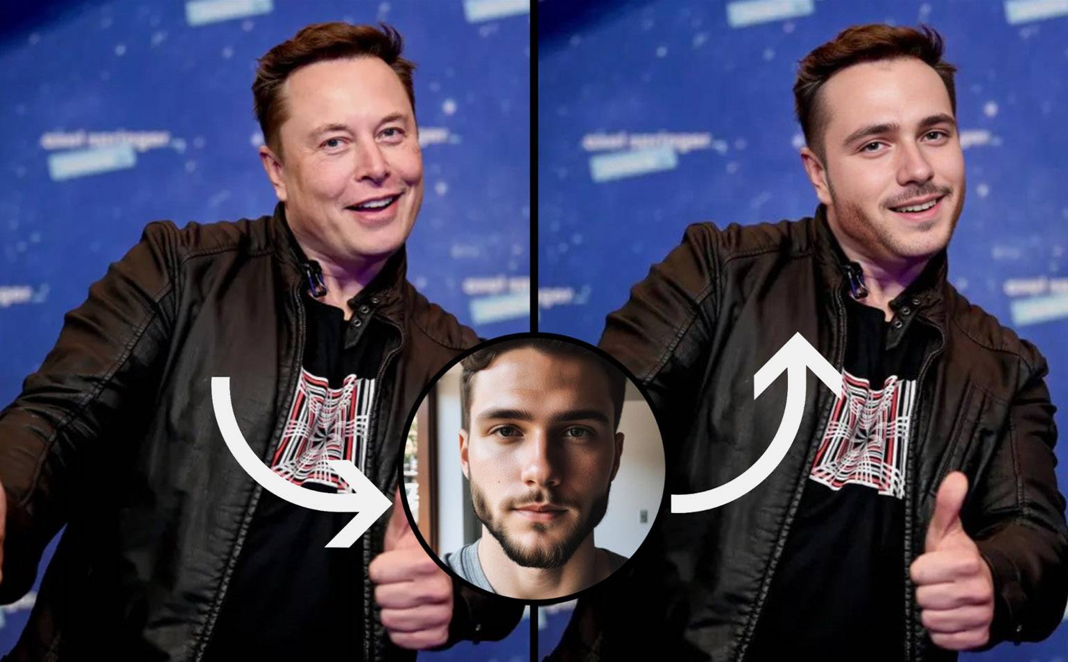 Сервис подходит, если вы хотите заменить лицо одного человека на фото со знаменитостью. Вы загружаете своё фото и изображение звезды, а нейросеть автоматически совмещает лица. Лучше всего работают портреты с похожим углом лица и освещением.