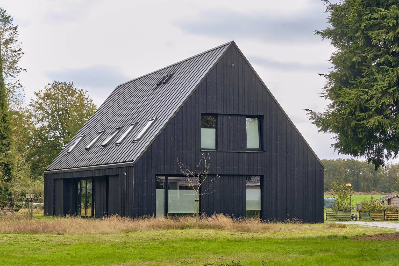 Для кровли и в некоторых случаях для боковых стен барнхаусов используют металл, чаще всего — эстетичный и устойчивый к коррозии кликфальц. Его укладывают вертикально, что создаёт эффект плавного перехода крыши в фасад. Для облицовки лицевых сторон дома применяют дерево, обычно это имитация бруса или планкен.