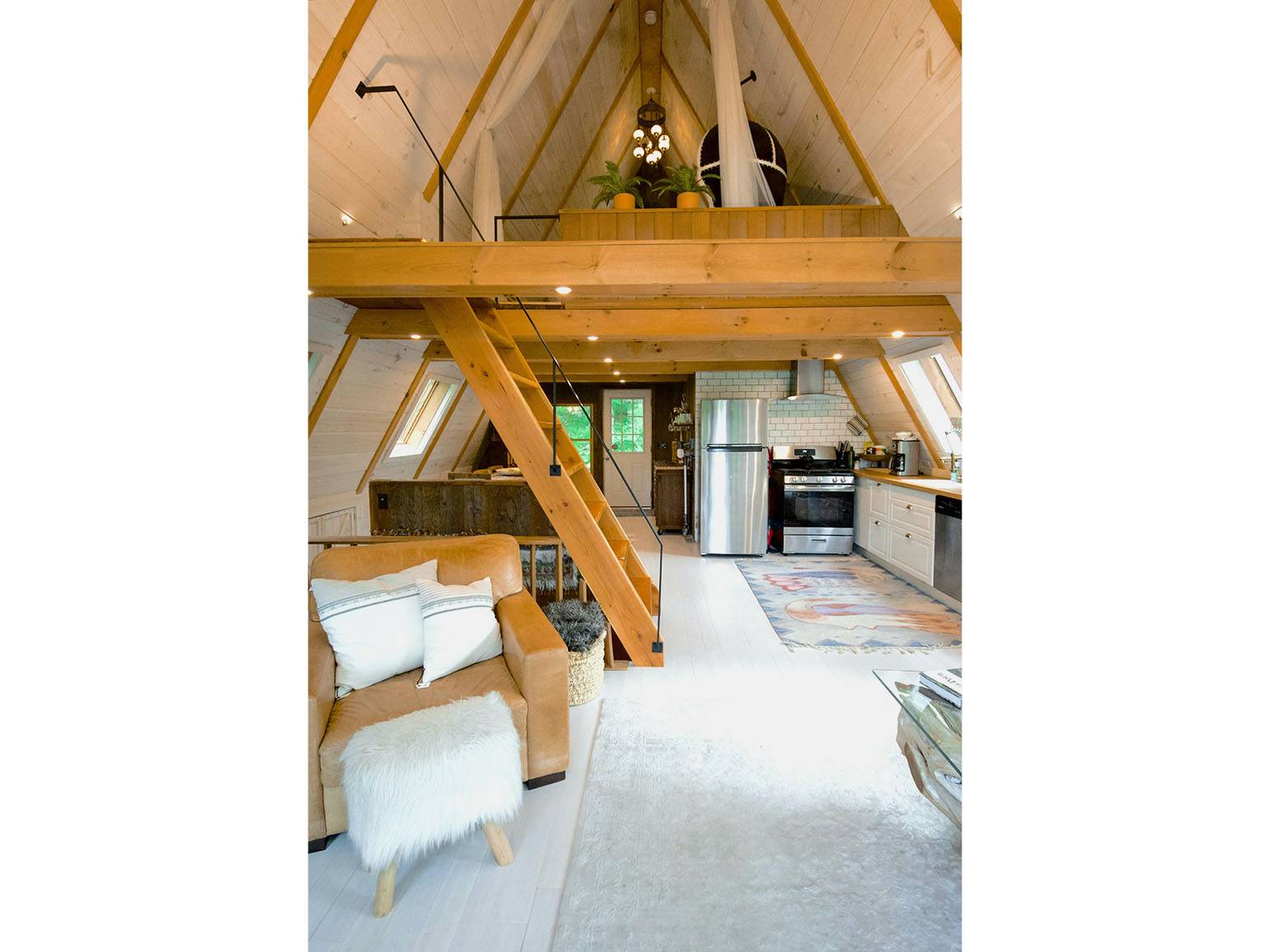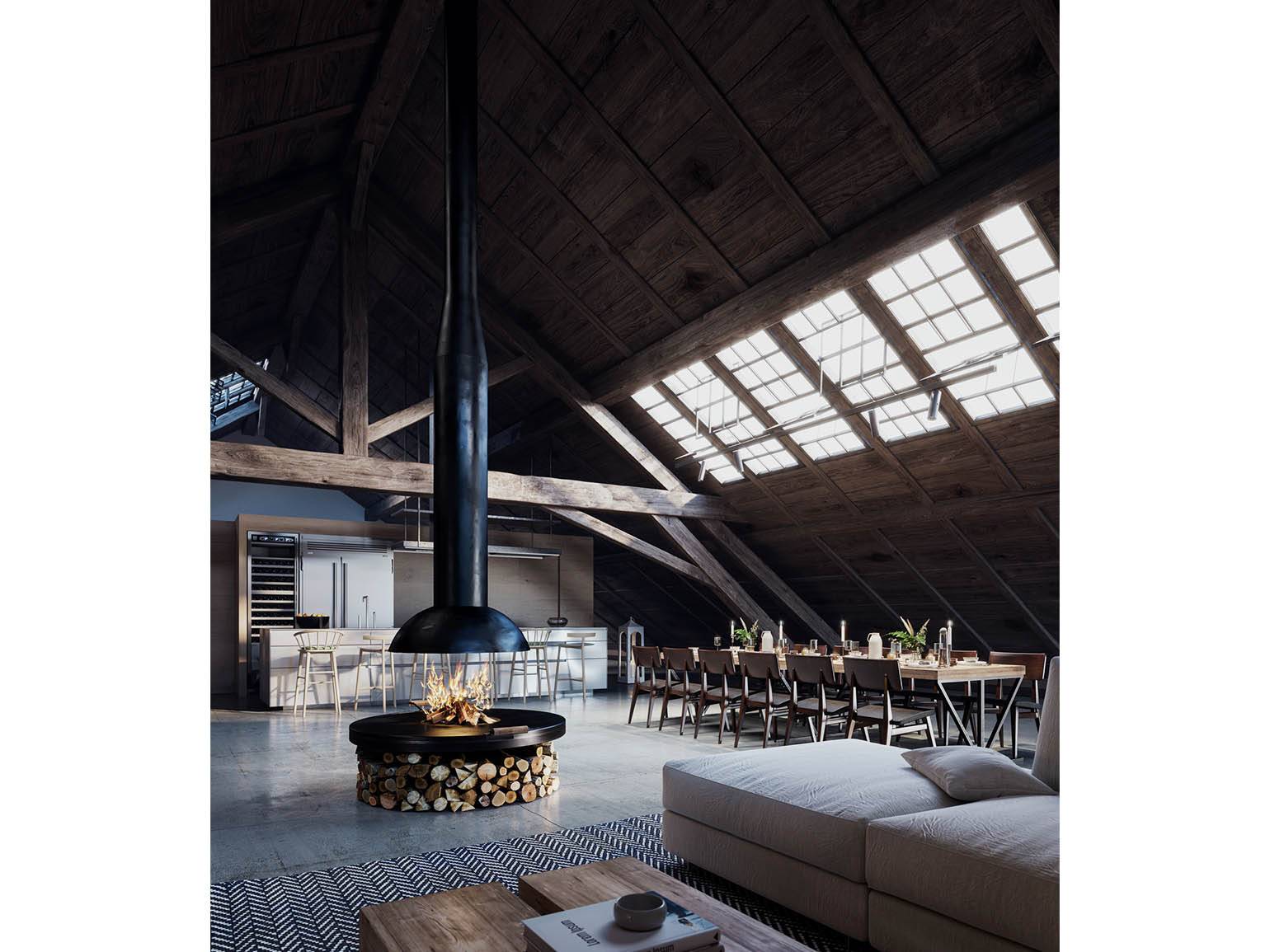 В барнхаусах высокие потолки — от трёх с половиной до пяти метров. Это создаёт ощущение простора и масштаба даже в небольших домах. Помимо эстетики, высокие потолки улучшают естественную вентиляцию и дают больше возможностей для организации освещения. Также под крышей можно сделать мансарду.