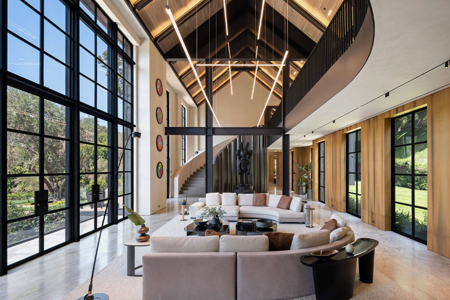 Если в доме есть терраса или патио, они становятся органичным продолжением гостиной и будто стирают границу между природой и внутренним пространством дома. Такой эффект достигается, например, с помощью раздвижных стеклянных дверей.