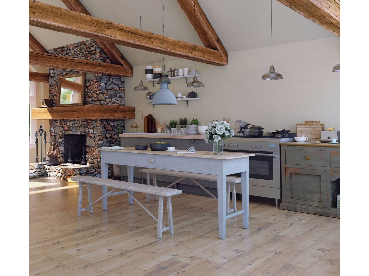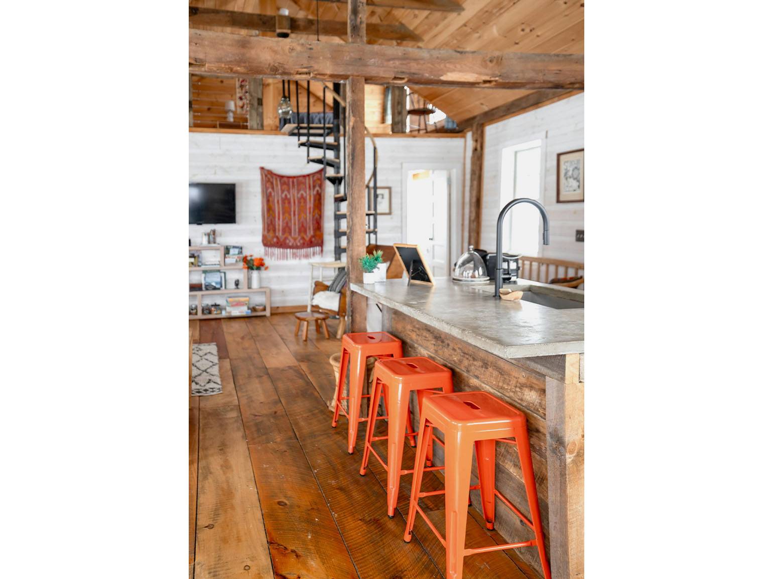 В доме-амбаре обычно нет отдельного помещения для кухни и гостиной. Эти комнаты объединены в общее пространство со столовой зоной. Поэтому жильцам удобно перемещаться.