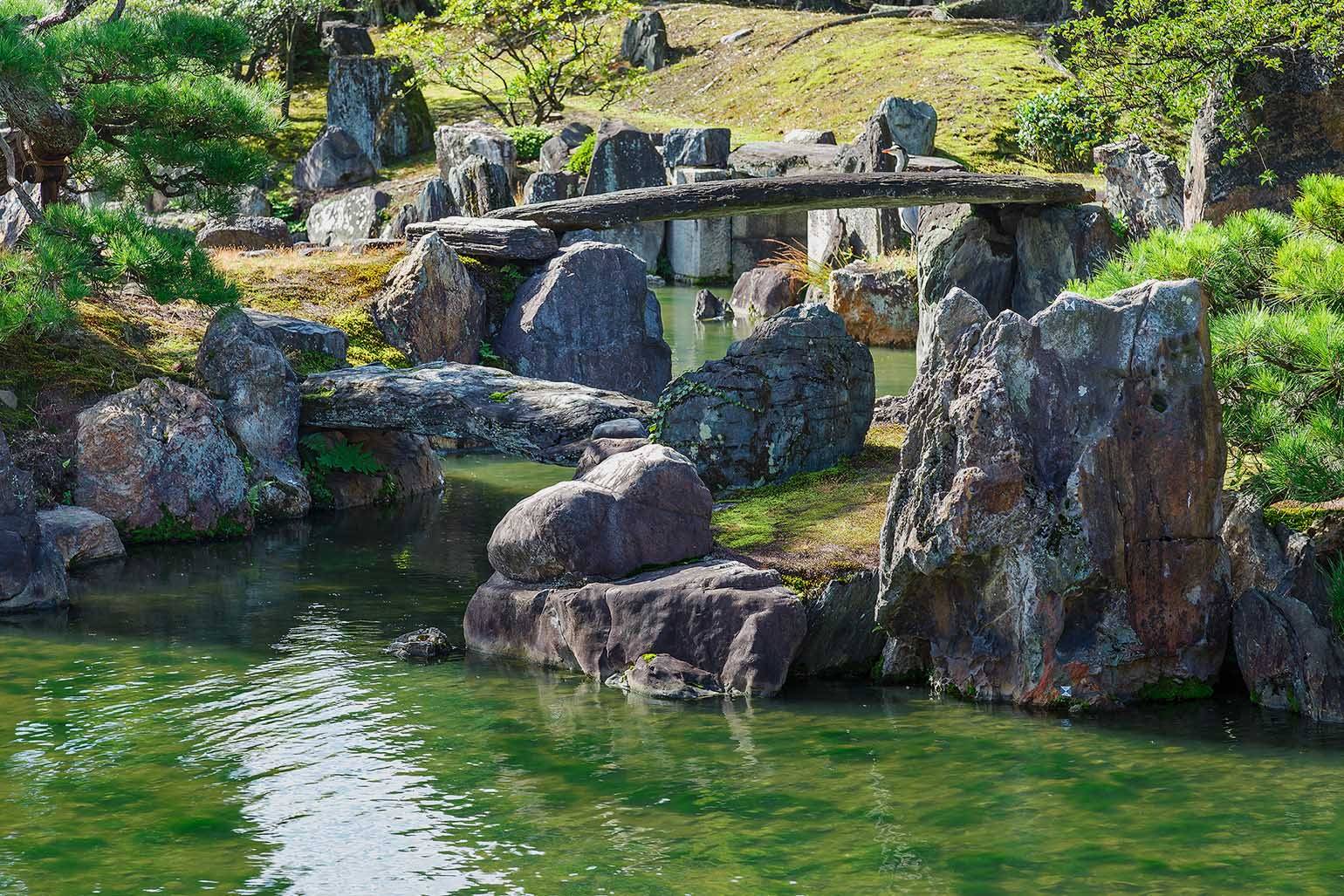 • Японский рокарий — это лаконичный и минималистичный сад в пастельных тонах, где гладкие валуны занимают большую часть пространства, а растения служат лишь акцентами. Композиция чаще симметрична с волнистыми линиями из гравия или песка, дополняется декором в виде фонарей или статуэток.