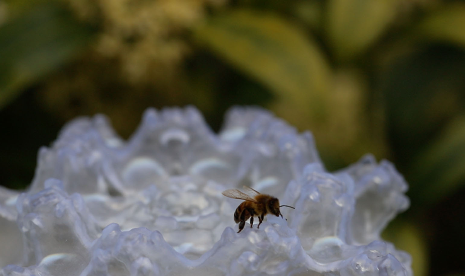 Объекты напечатаны на 3D-принтере и сочетают три ключевых сигнала, на которые ориентируются насекомые, — радиальную симметрию формы, яркий аромат и отражающую поверхность. Для этого дизайнер использует параметрическое моделирование, структурный цвет (когда оттенок создаётся не пигментом, а микроструктурой поверхности) и встроенные ароматические молекулы, устойчивые к загрязнению воздуха.