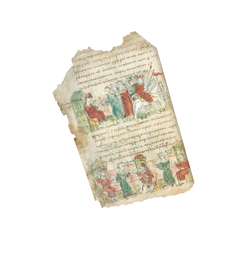 Берестяная грамота XIII в. «От Братяты к Нежилу. Пойди, сын, домой. Ты свободен. Если же не пойдёшь, пошлю за тобой ябедников. А заплатил я 20 гривен, а ты свободен»
