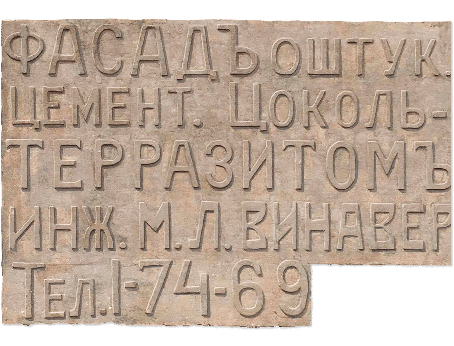 Дореволюционная настенная «визитка». Непроизносимые буквы вручную вырезаны в камне