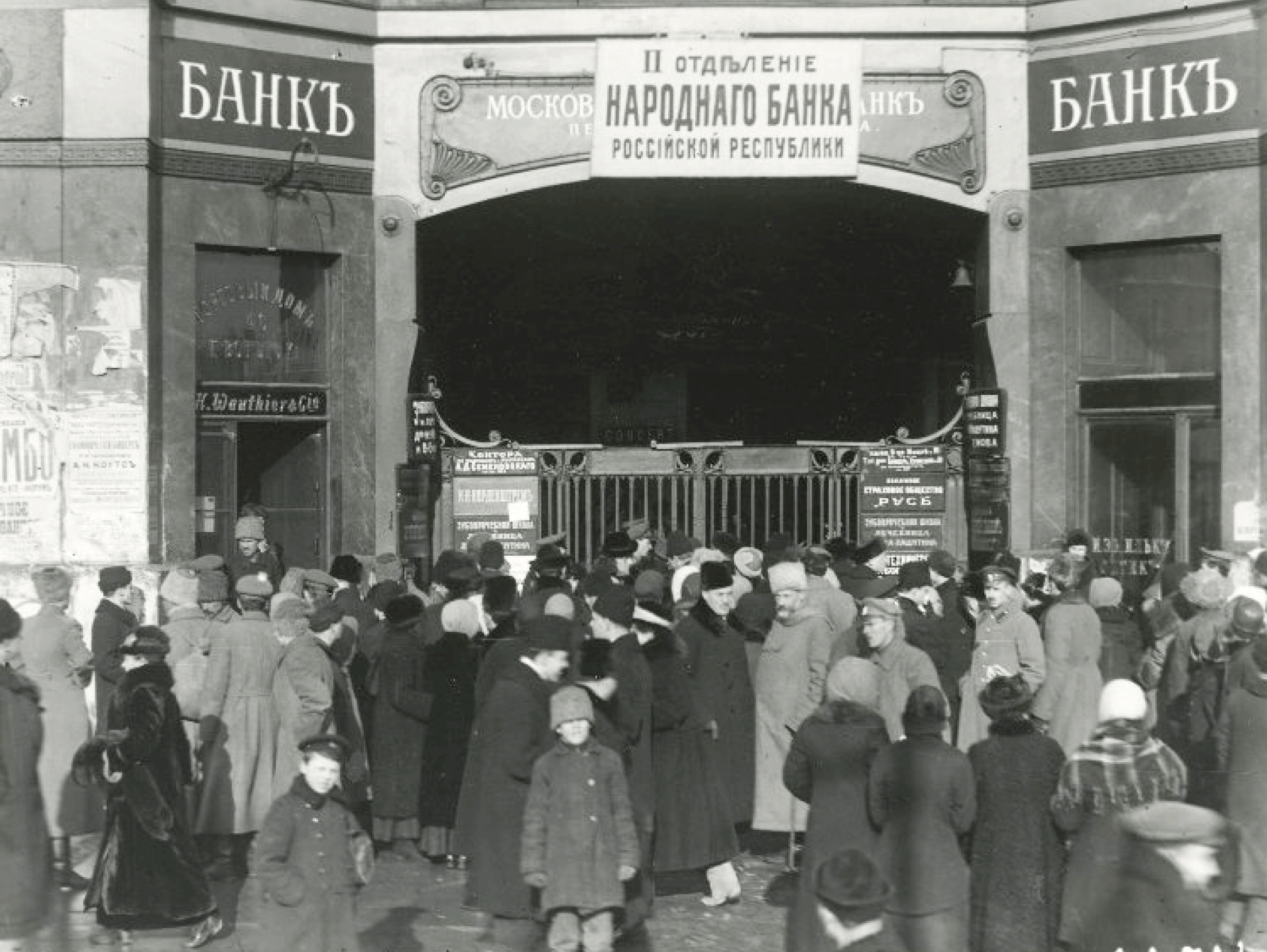 Фото: «Толпа вкладчиков II отделения народного банка», январь 1918 г., г. Петроград — История России в фотографиях