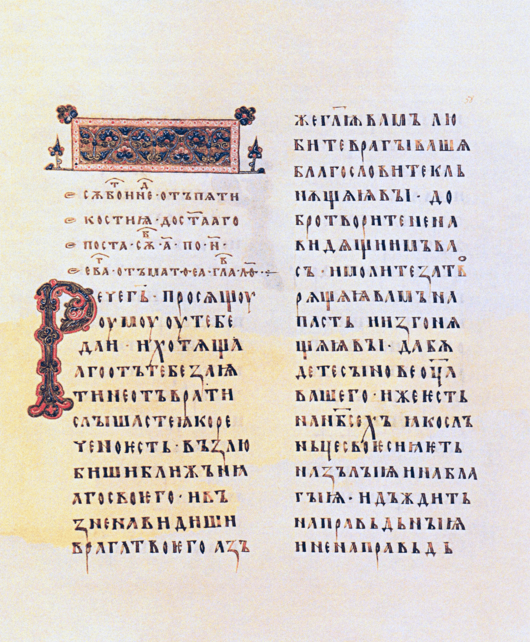 Евангелие, страница. Кириллица, полуустав