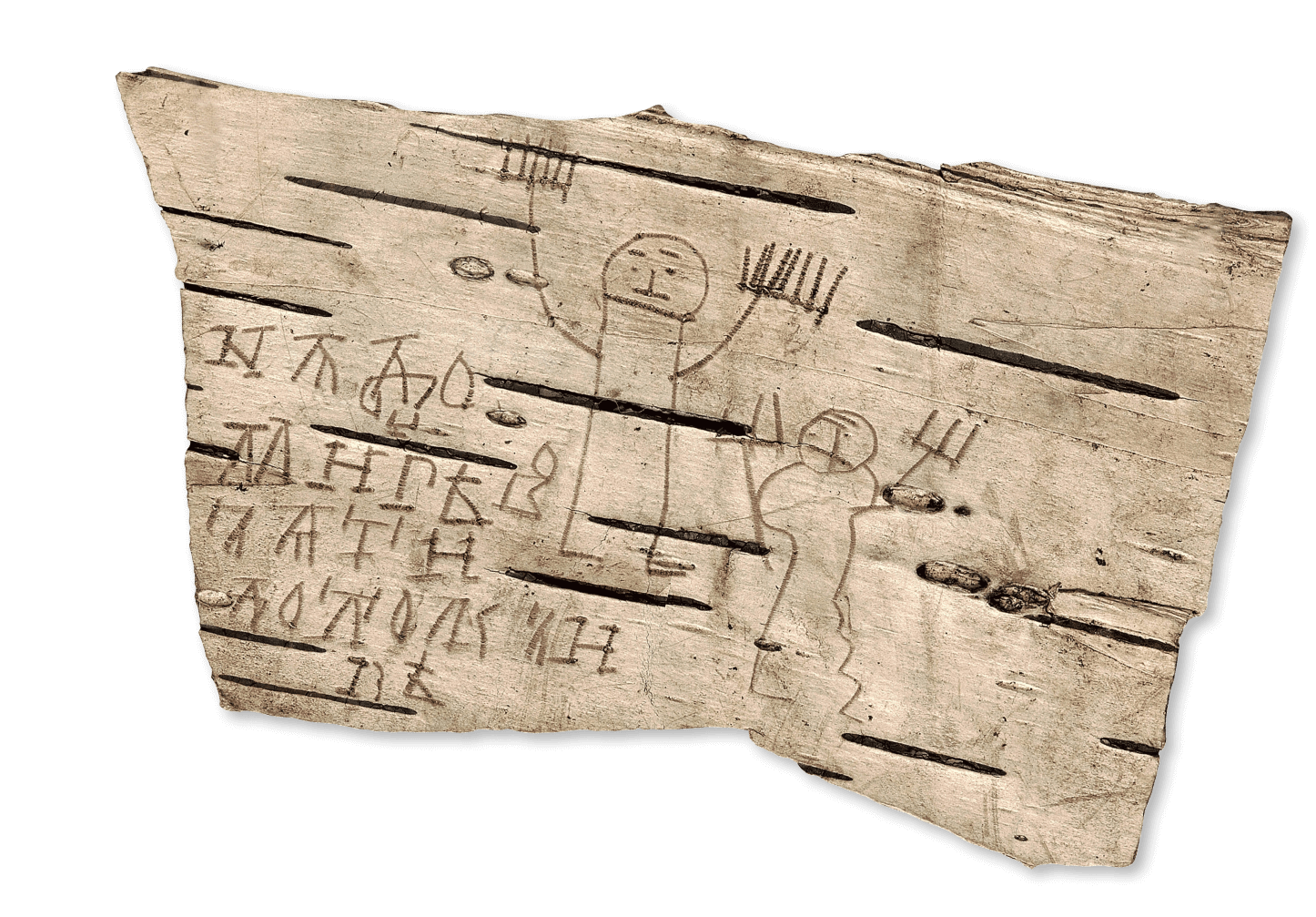 Берестяная грамота XIII в. Рисунки и упражнения в письме мальчика Онфима