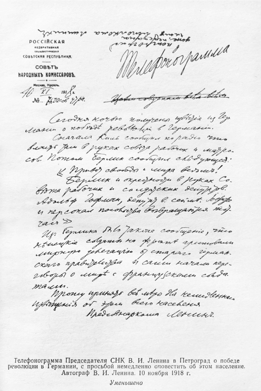 Текст, написанный от руки Лениным 10 ноября 1918 года. С i, ять и ъ в конце слов