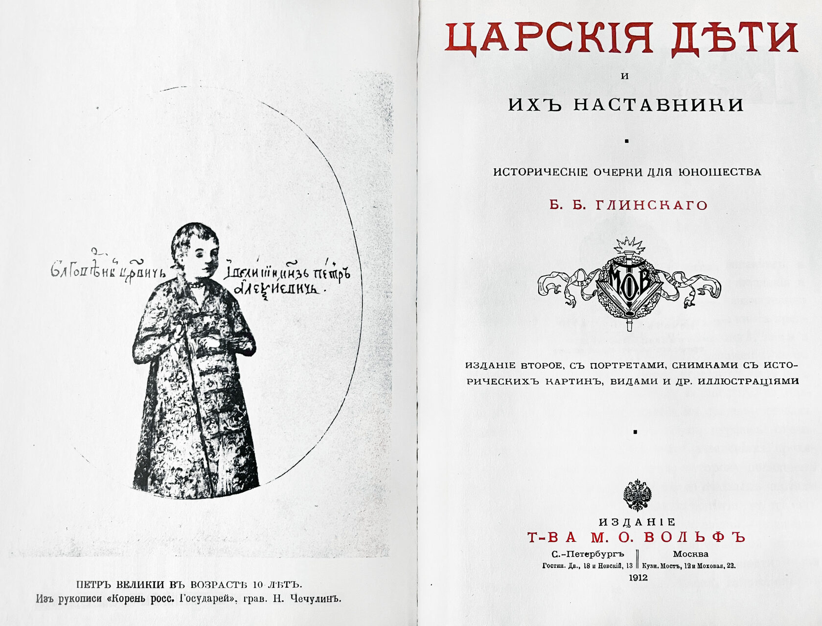 Изображение: Б. Б. Глинский. Царские дети и их наставники. Ист. очерки для юношества Б. Б. Глинского. Товарищество М. О. Вольфа. Издательство Курского обкома КП РСФСР, 1912 / Российская государственная библиотека