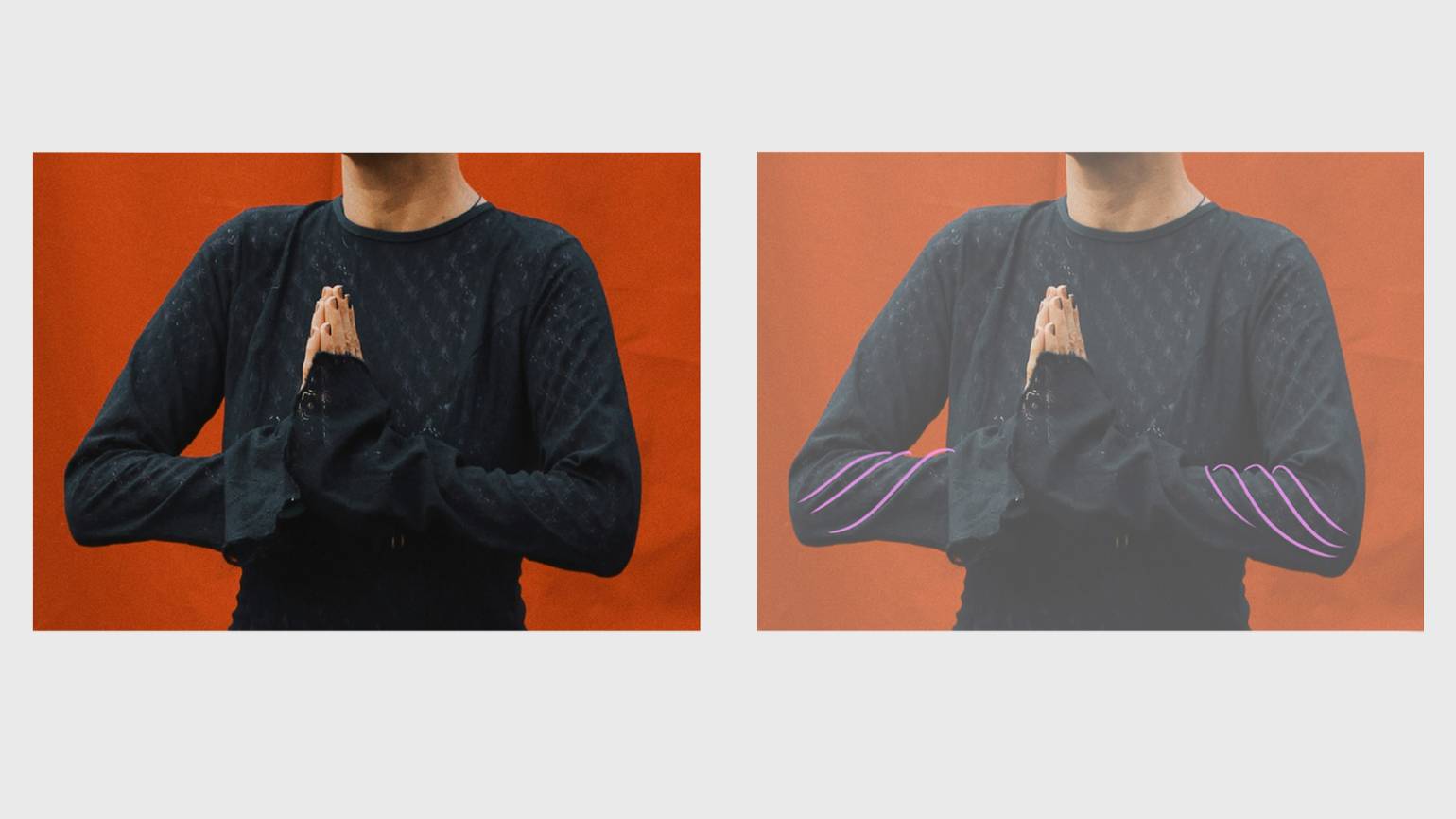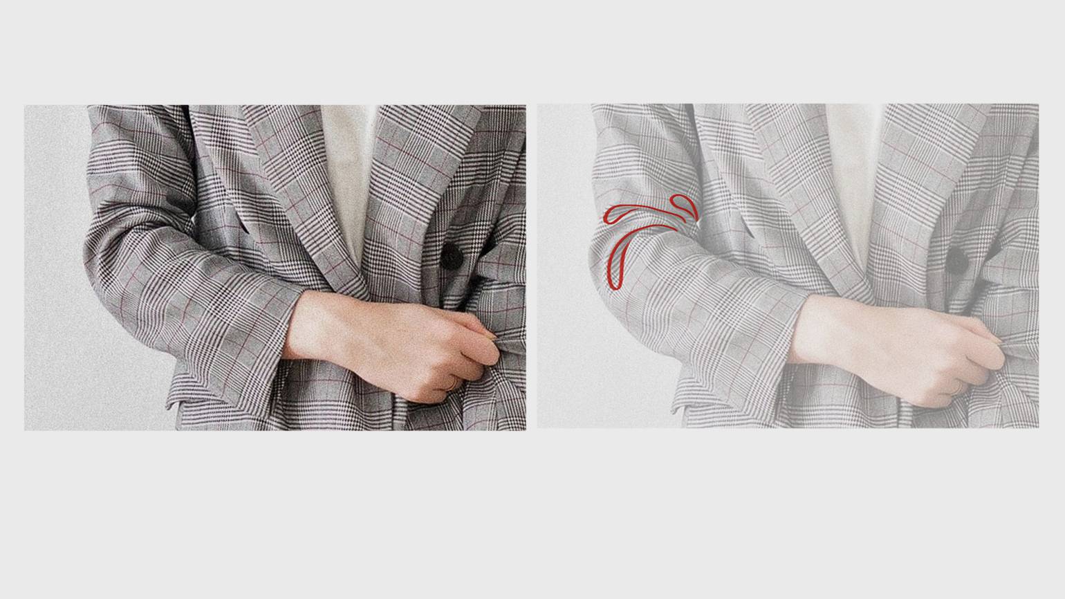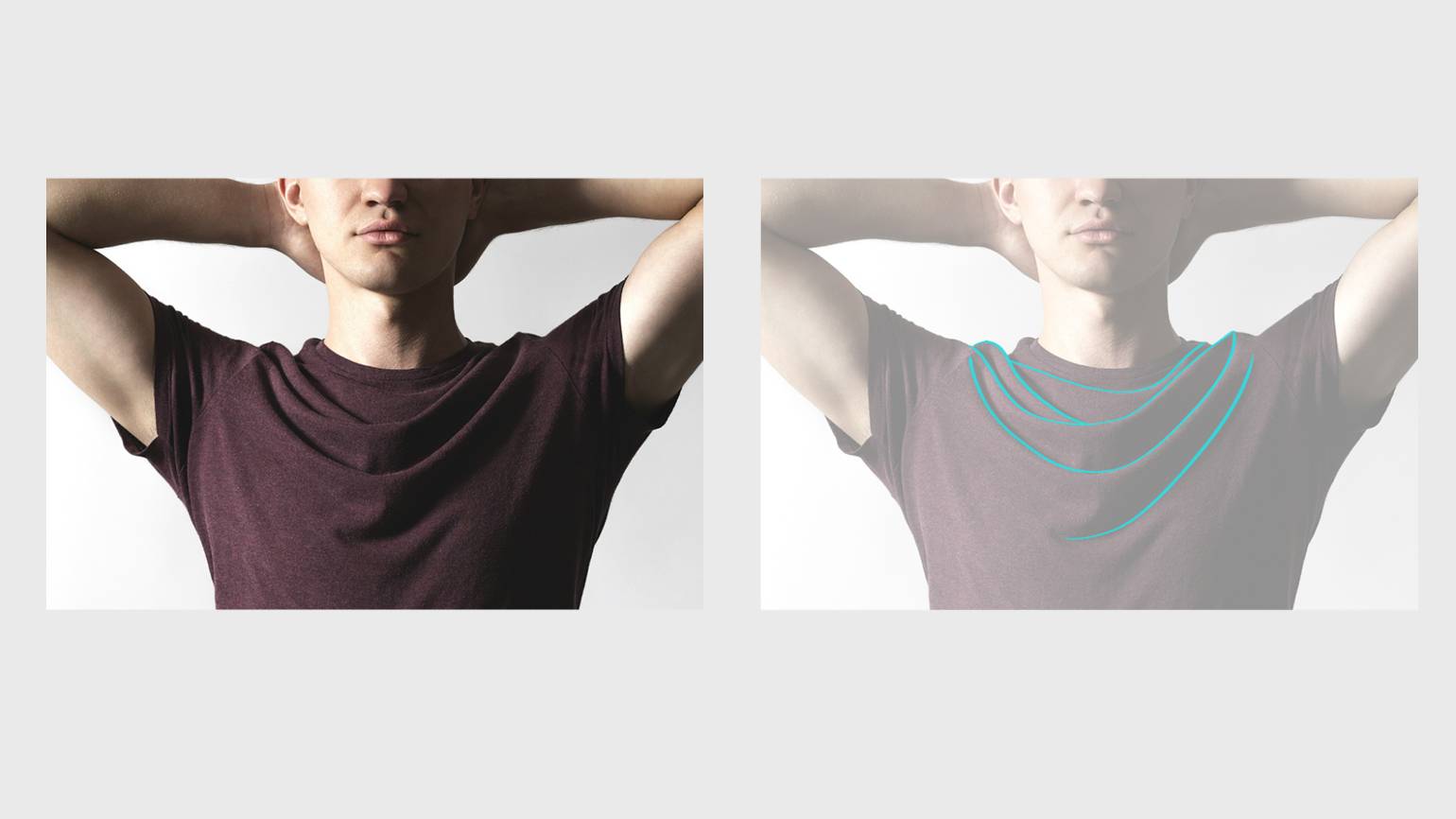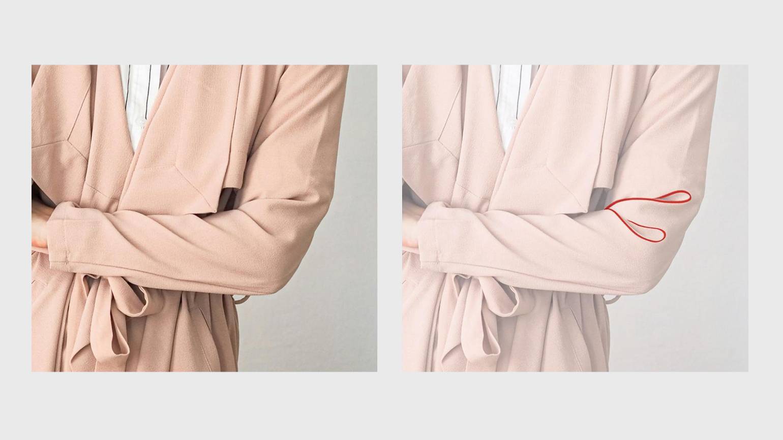 Точка напряжения находится на сгибе — например, на внутренней части локтя. На самом локте ткань, напротив, растянется и будет без складок