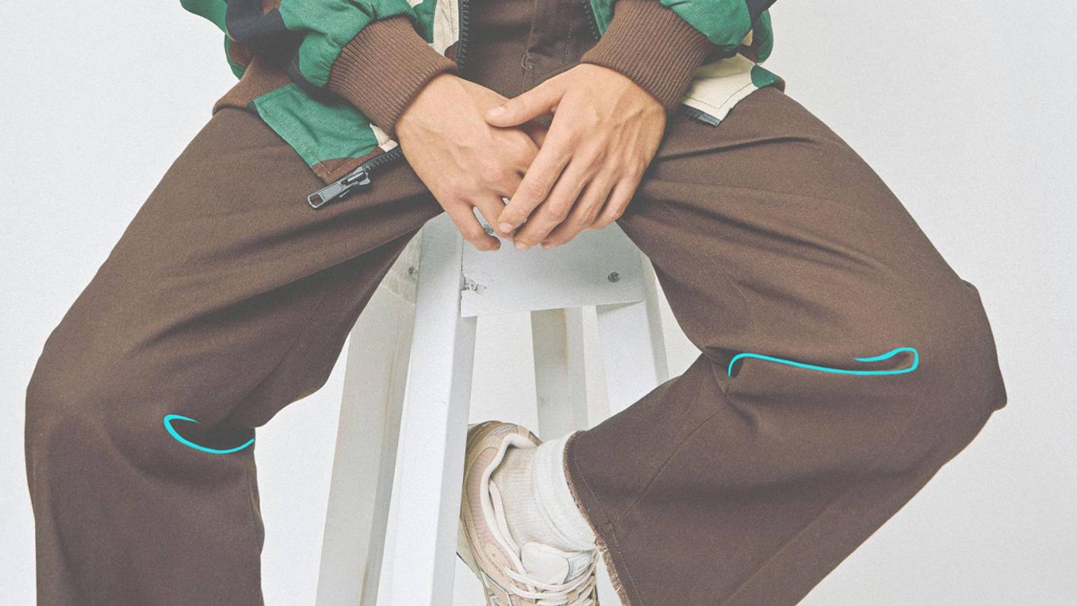 Образуются, когда ткань собирается вокруг цилиндра и формирует складки в виде перекрещивающихся линий. Самый частый и ближайший пример — рукава и штанины, где ткань оборачивается вокруг рук и ног. Особенно это касается моментов, когда под тяжестью своего веса штаны внизу собираются в складки.