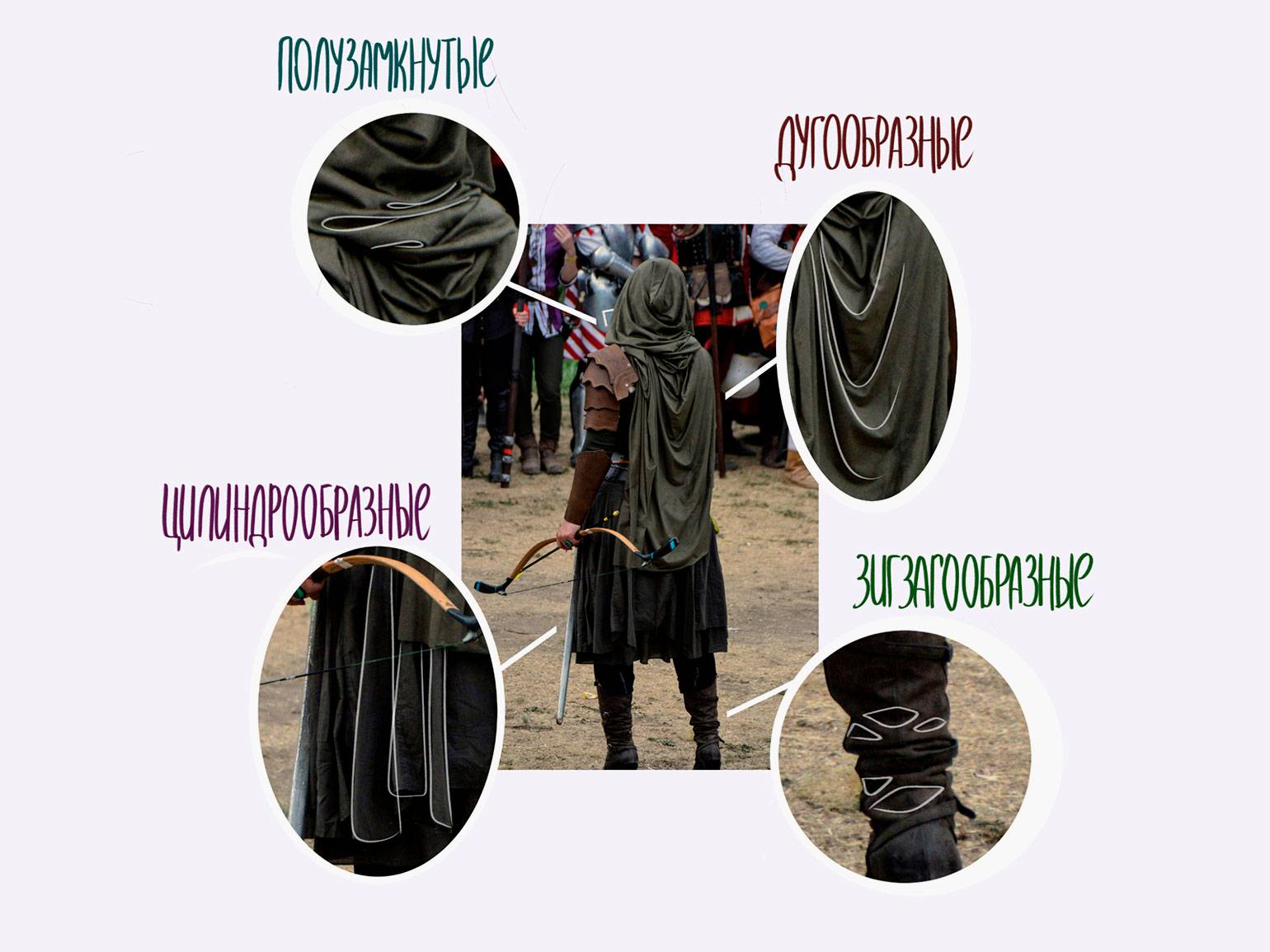 В русскоязычной среде устоявшихся терминов нет, поэтому рядом с переводом мы даём английское название — по нему будет легче искать референсы и дополнительную информацию по нужному виду складок.