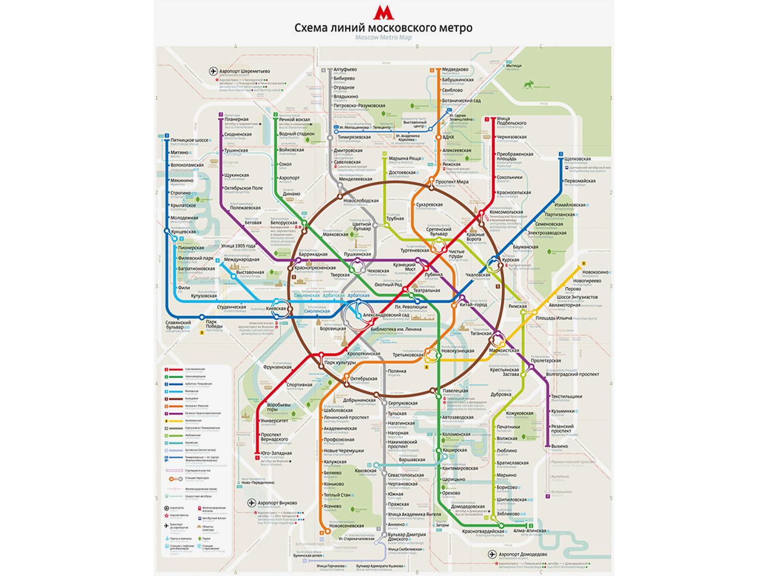 Схема линий московского метро от Студии Артемия Лебедева 2010, 2013, 2016, 2019 г.