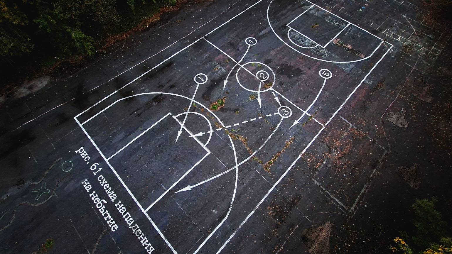 — Я несколько лет жил с идеей проекта «Схема нападения на небытие», и только в этом году всё сошлось, чтобы его реализовать. Однозначно ставлю этот проект на полочку «‎горжусь»‎. На асфальт пустеющего сквера имени легендарного баскетболиста Александра Канделя, где больше нет колец и никто не играет, я нанёс иллюстрацию тактической схемы нападения из баскетбольного учебника. Это отчаянная попытка «атаковать небытие» — противостоять исчезновению памяти и личной истории, связанной с этим местом.