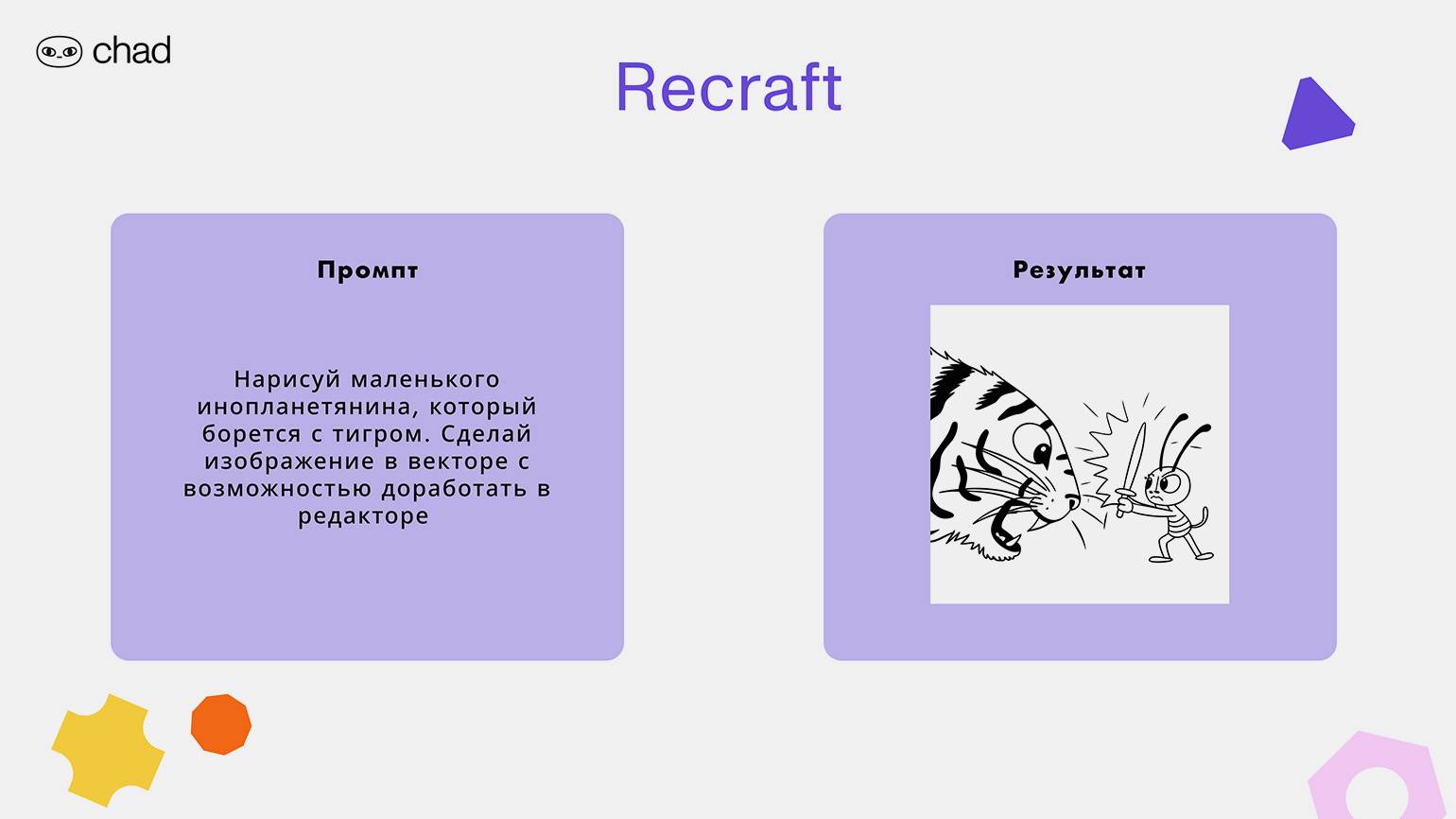 Recraft — модель и платформа для дизайнеров, заточенная под векторную графику, логотипы, иконки и аккуратные иллюстрации, а не только «красивые картинки». Её ключевая особенность — генерация редактируемых векторов (SVG) и работа с кастомными стилями.