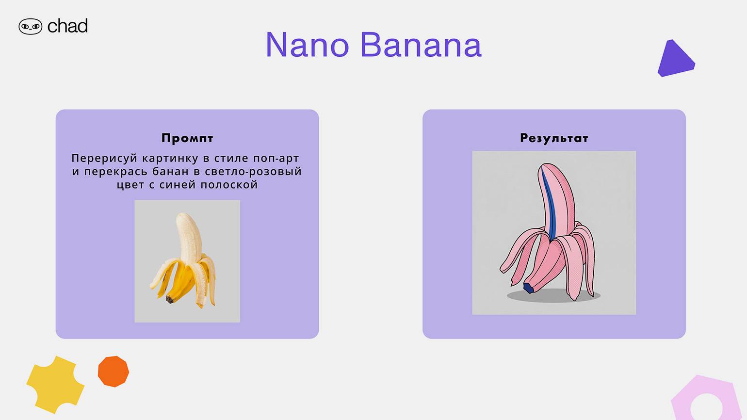 Пример использования: вы загружаете базовый макет баннера, просите усилить свет, заменить фон на более абстрактный, добавить лёгкий градиент и одну новую версию персонажа, — Nano Banana вносит правки и сохраняет композицию.
