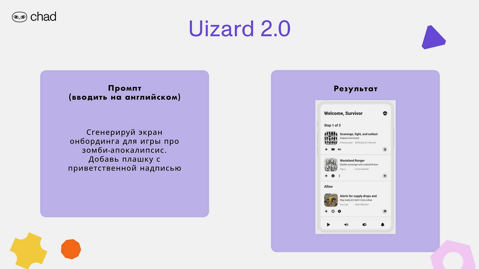Пример использования: продакт описывает экран онбординга и пару ключевых сценариев, Uizard собирает несколько вариантов интерфейса, а затем дизайнер уточняет визуальный стиль и логику прямо в редакторе.