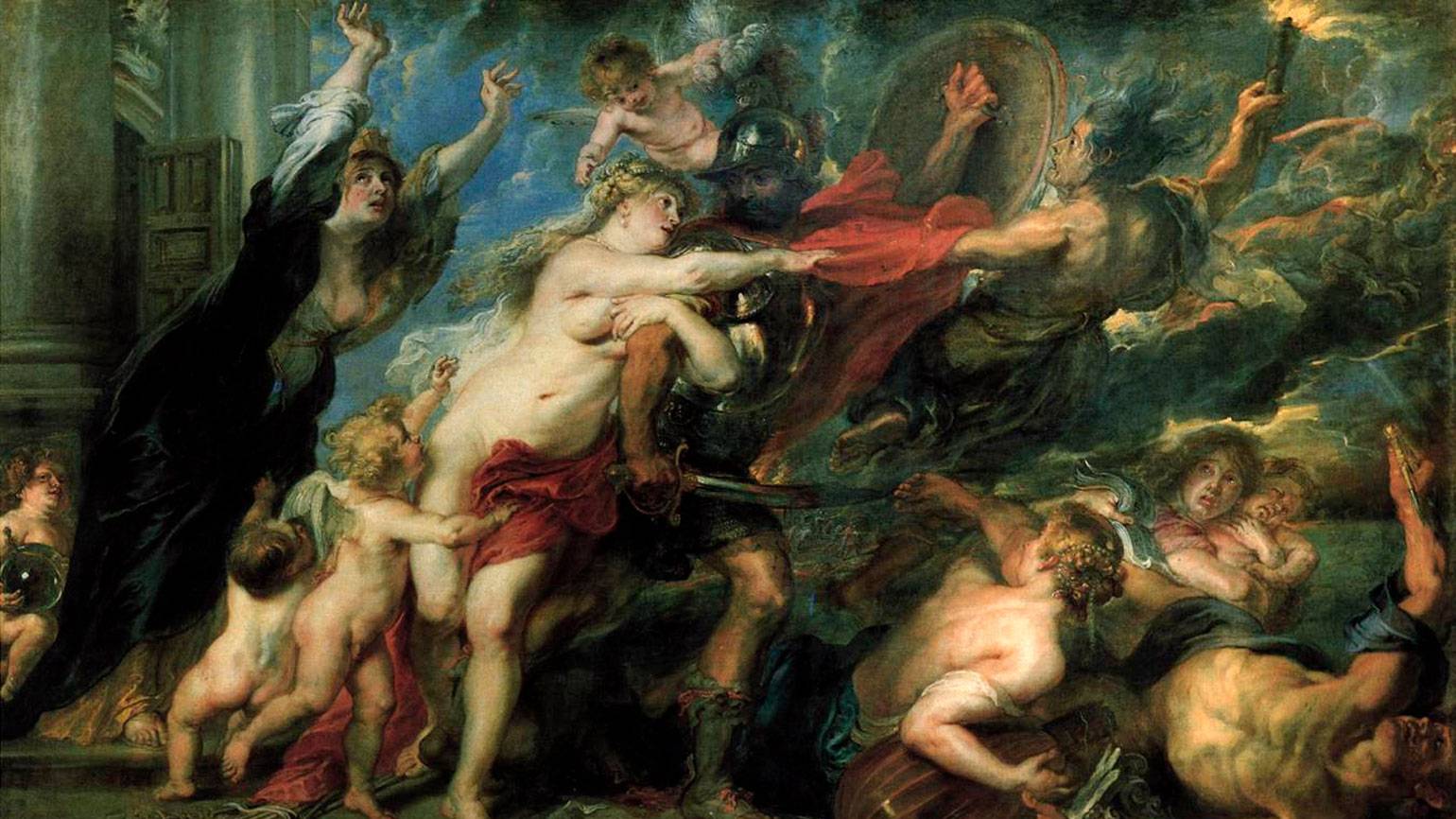 Рубенс в 1638 году создаёт аллегорические «Последствия войны»; впрочем, в картине всё прямо, без метафор. Марс в ней топчет книги и музыкальные инструменты, Венера зазря пытается его удержать, Европа в трауре.
