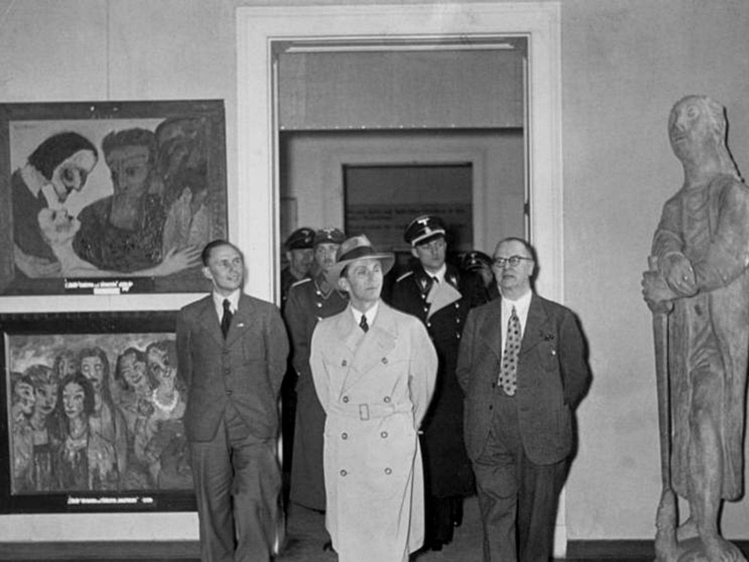 В Мюнхене открывают выставку «Дегенеративное искусство»: нацисты выставляют работы экспрессионистов, дадаистов, сюрреалистов как пример упадка. 20 тысяч таких произведений изъяты из музеев, часть сожжена, часть продана за границу.