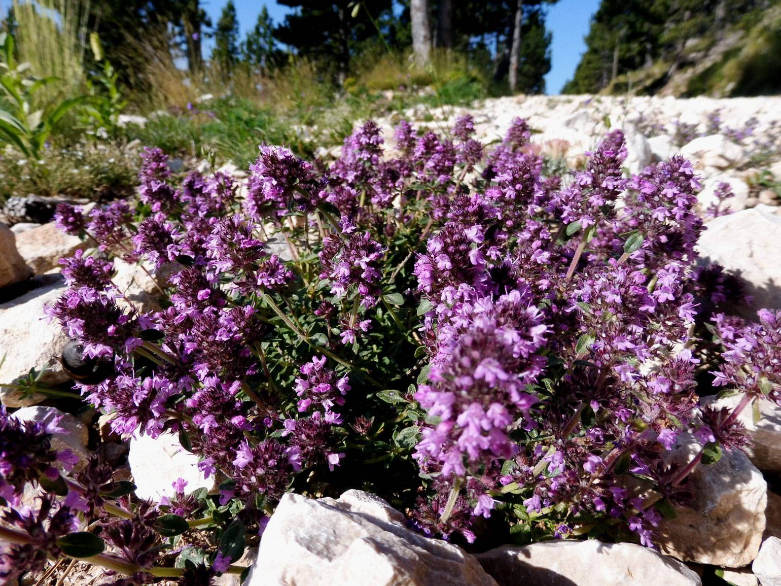 Тимьян, он же чабрец, также неприхотлив, любит солнце, хорошо переносит засуху. Тимьян — почвопокровник, поэтому он очень хорошо смотрится вдоль дорожек, на склонах альпийских горок.
