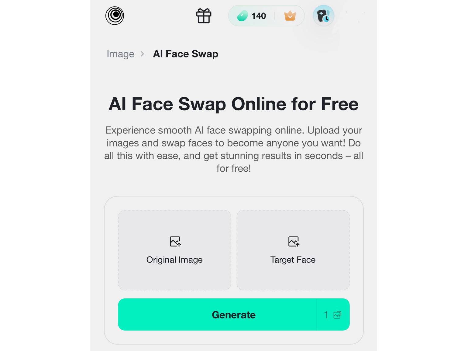 Media.io — онлайн-инструмент для замены лица на фото и видео через промпты. Может давать недостаточно точные результаты с первого раза, поэтому больше подходит для тех, кто уже хорошо умеет составлять текстовые запросы. За регистрацию даёт три кредита ежедневно.