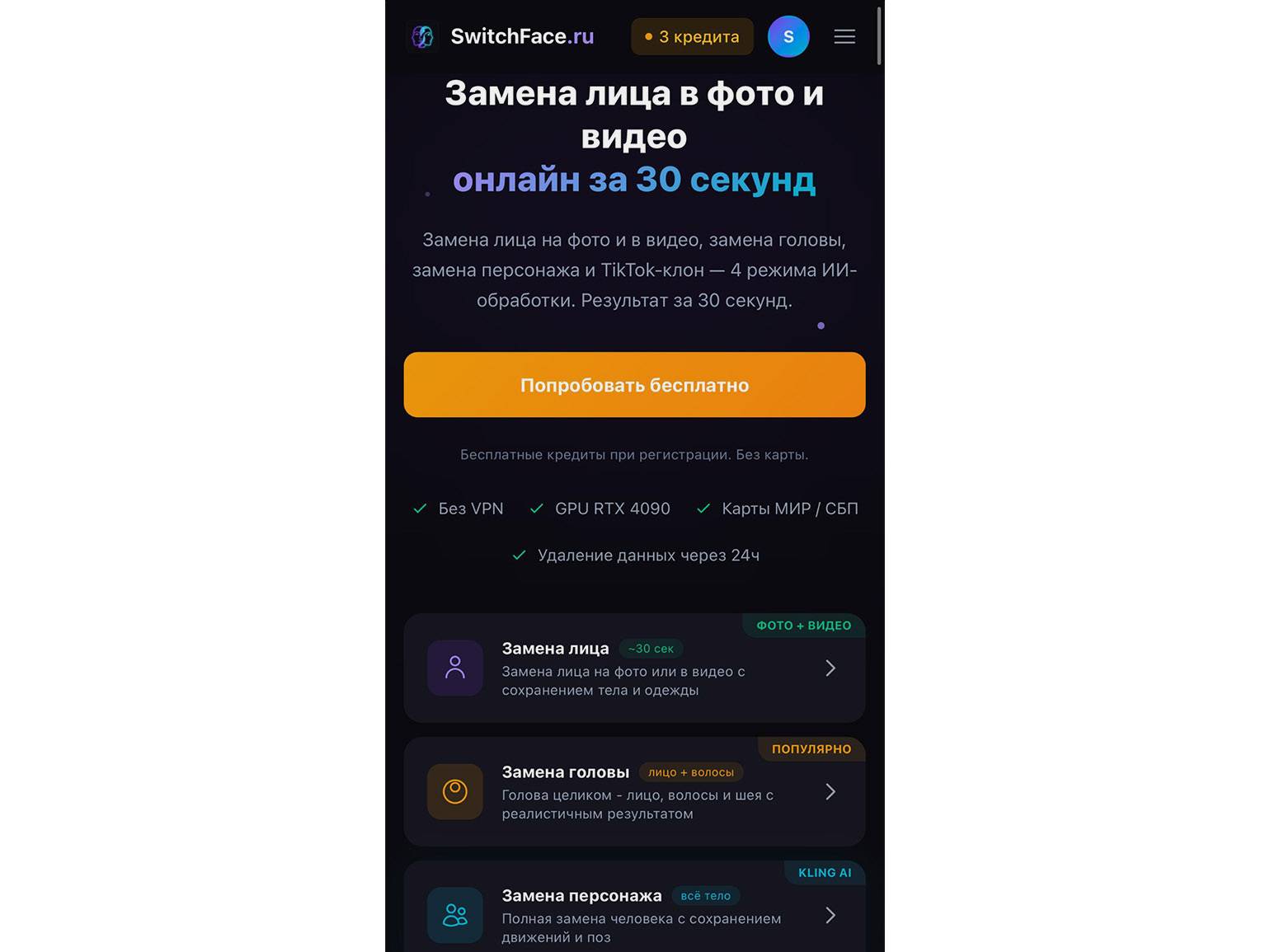 - можно менять лица бесплатно и без регистрации, но в ограниченном количестве;