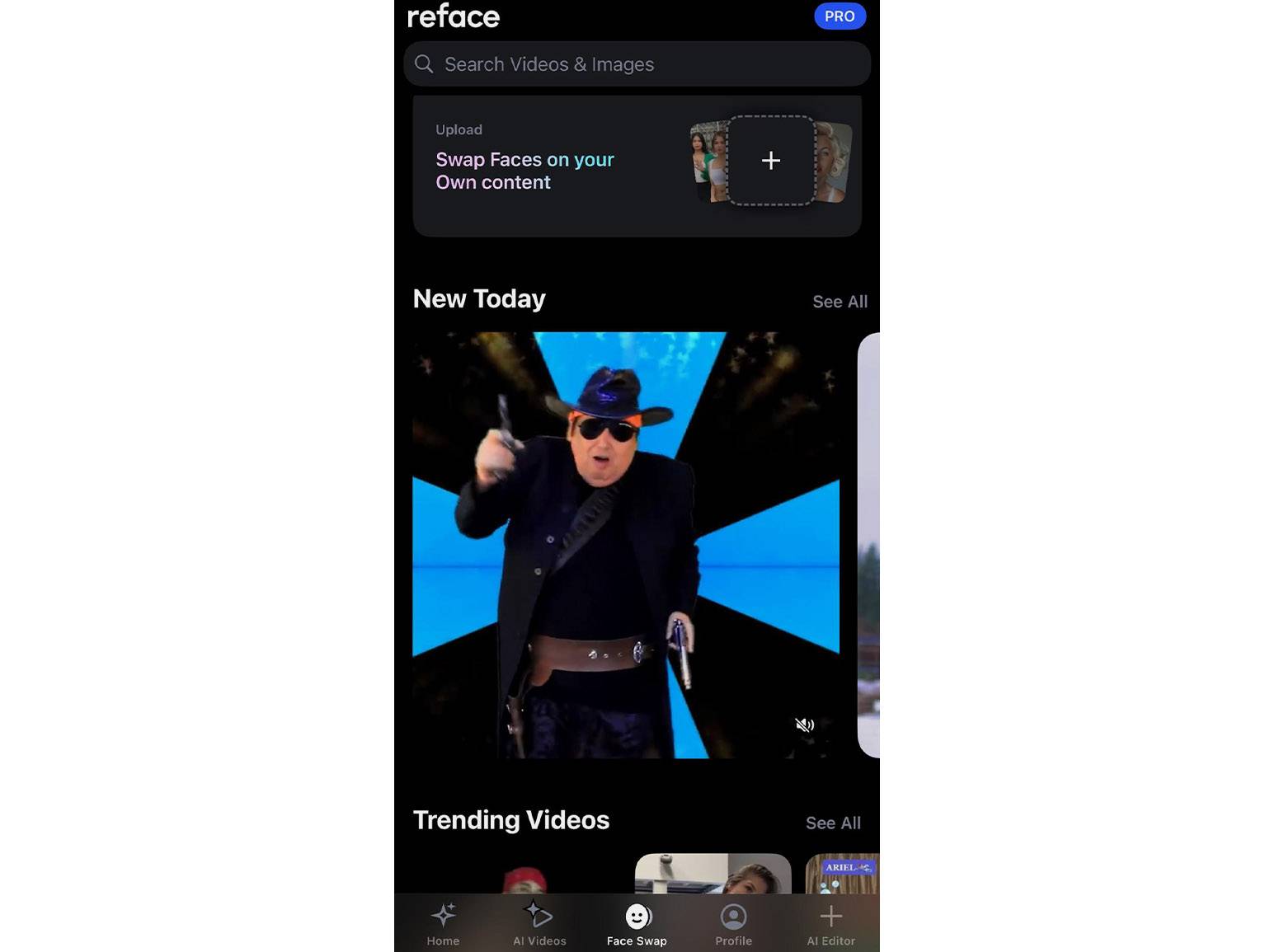 Reface — приложение для Android и iOS, которое позволяет за пару кликов изменить лицо в фото, видео и GIF. Если в учётной записи аккаунта Apple или Google указана Россия, для скачивания нужно изменить страну. Инструмент ориентирован на развлекательные материалы (мемы, гифки), поэтому отлично подойдёт любителям и контентмейкерам.