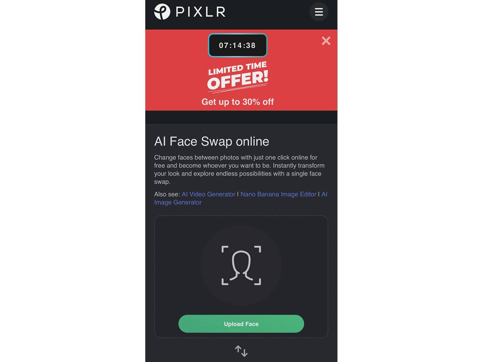 FaceSwapper — полностью бесплатный онлайн-сервис для быстрой замены лица на фото, видео и GIF. Позволяет менять одно и то же лицо на нескольких фотографиях сразу, а также работать с групповыми снимками. Благодаря простому интерфейсу и бесплатному доступу идеально подходит для новичков.