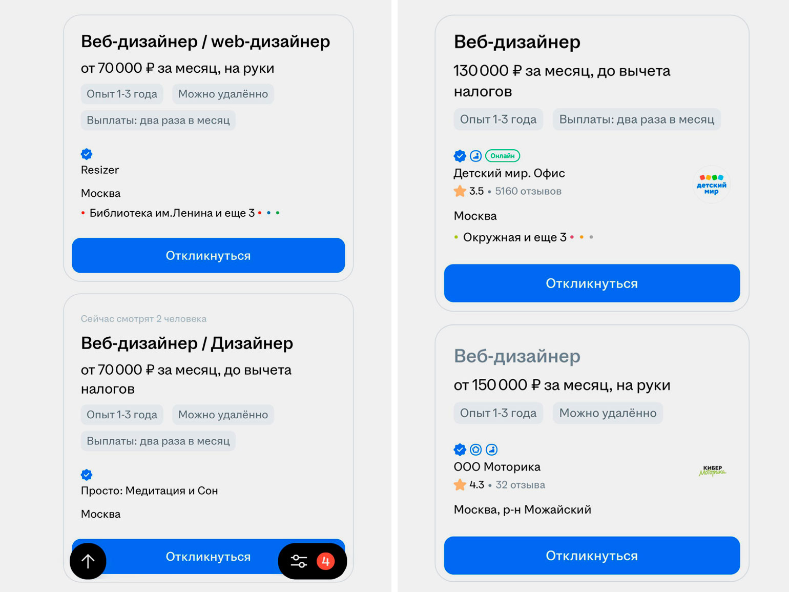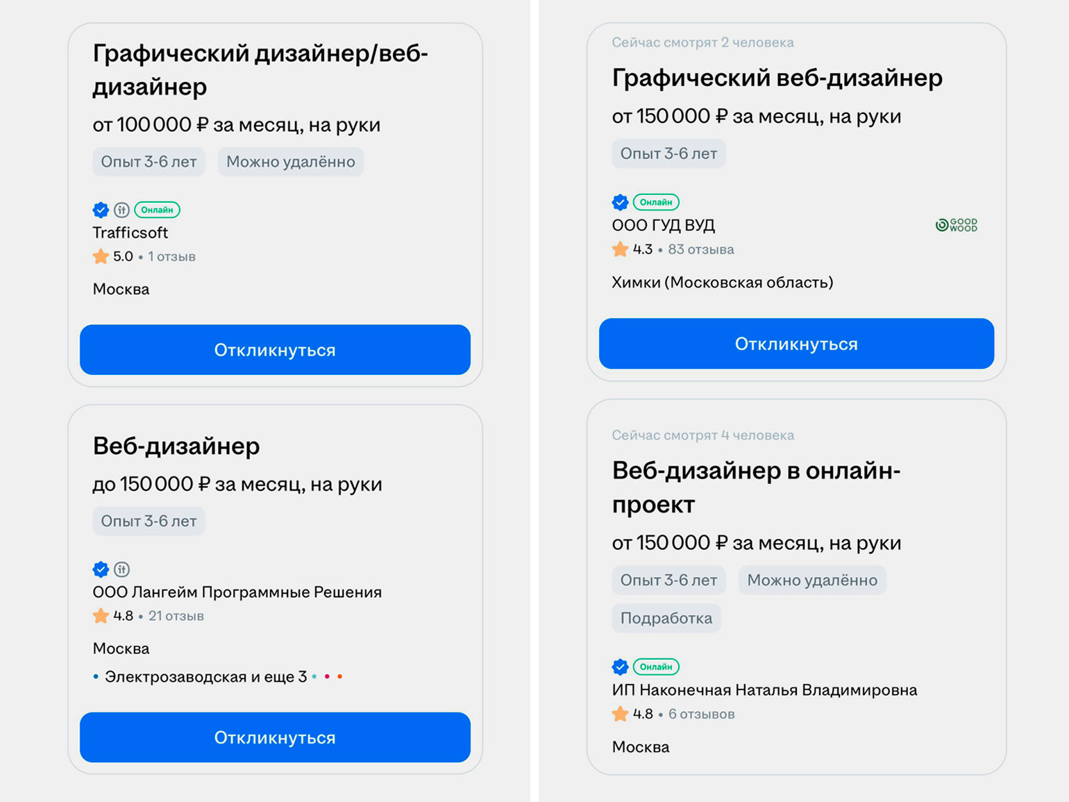 Дизайнеры из небольших городов также могут получать столичную зарплату — многие московские и петербургские работодатели указывают возможность удалённой работы.