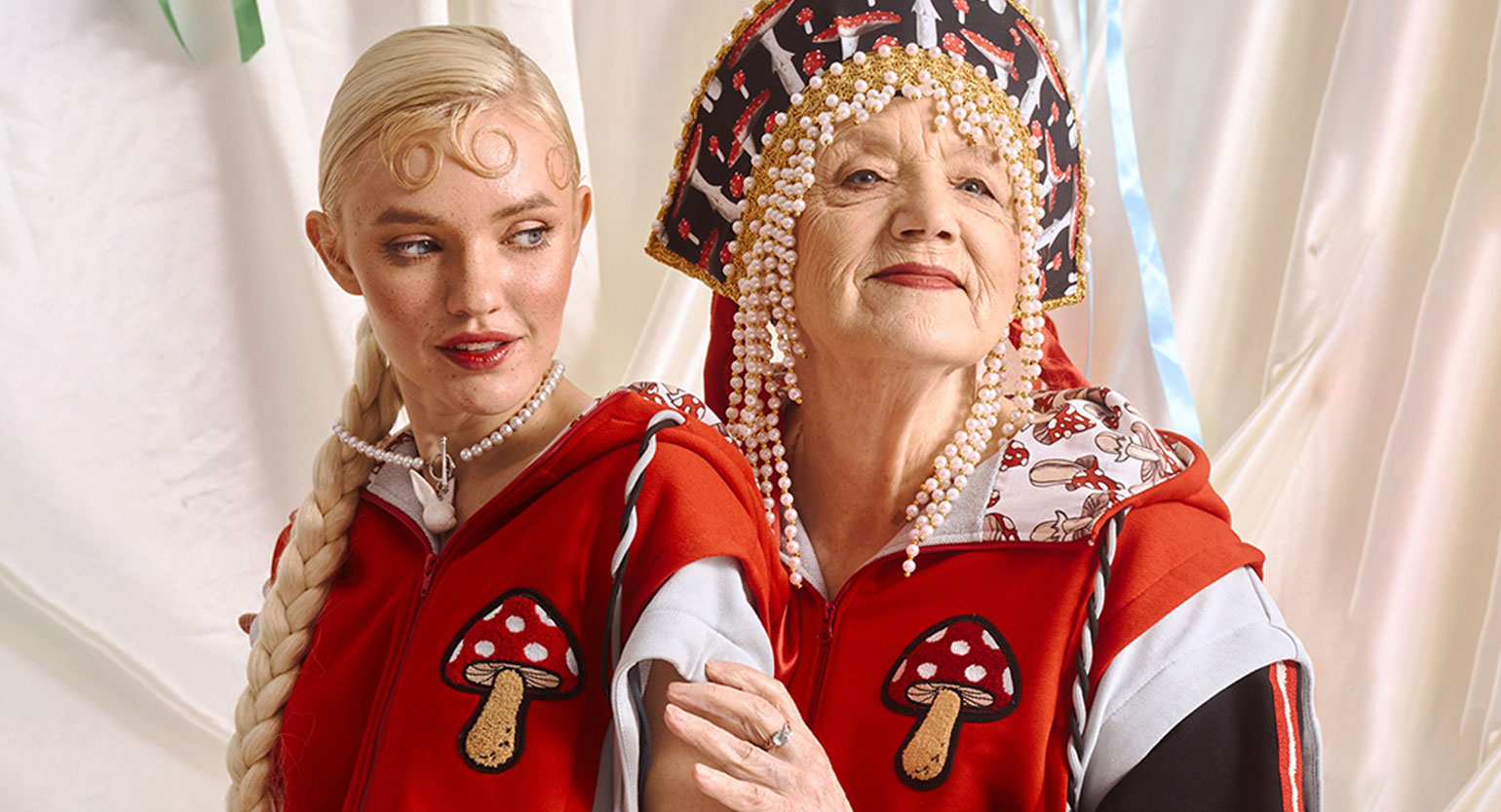 Весной 2025-го бренд выпустил коллекцию «Балаган» — фантазию на тему традиционных масленичных гуляний. Помимо украшений, свитшотов, брюк, футболок, рубашек есть костюм для поклонниц спортшика. Конечно же, с мухомором. Доступен под заказ.