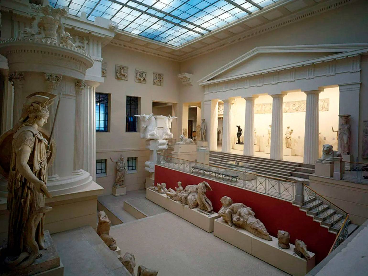 Белый зал реконструирует Парфенон изнутри.