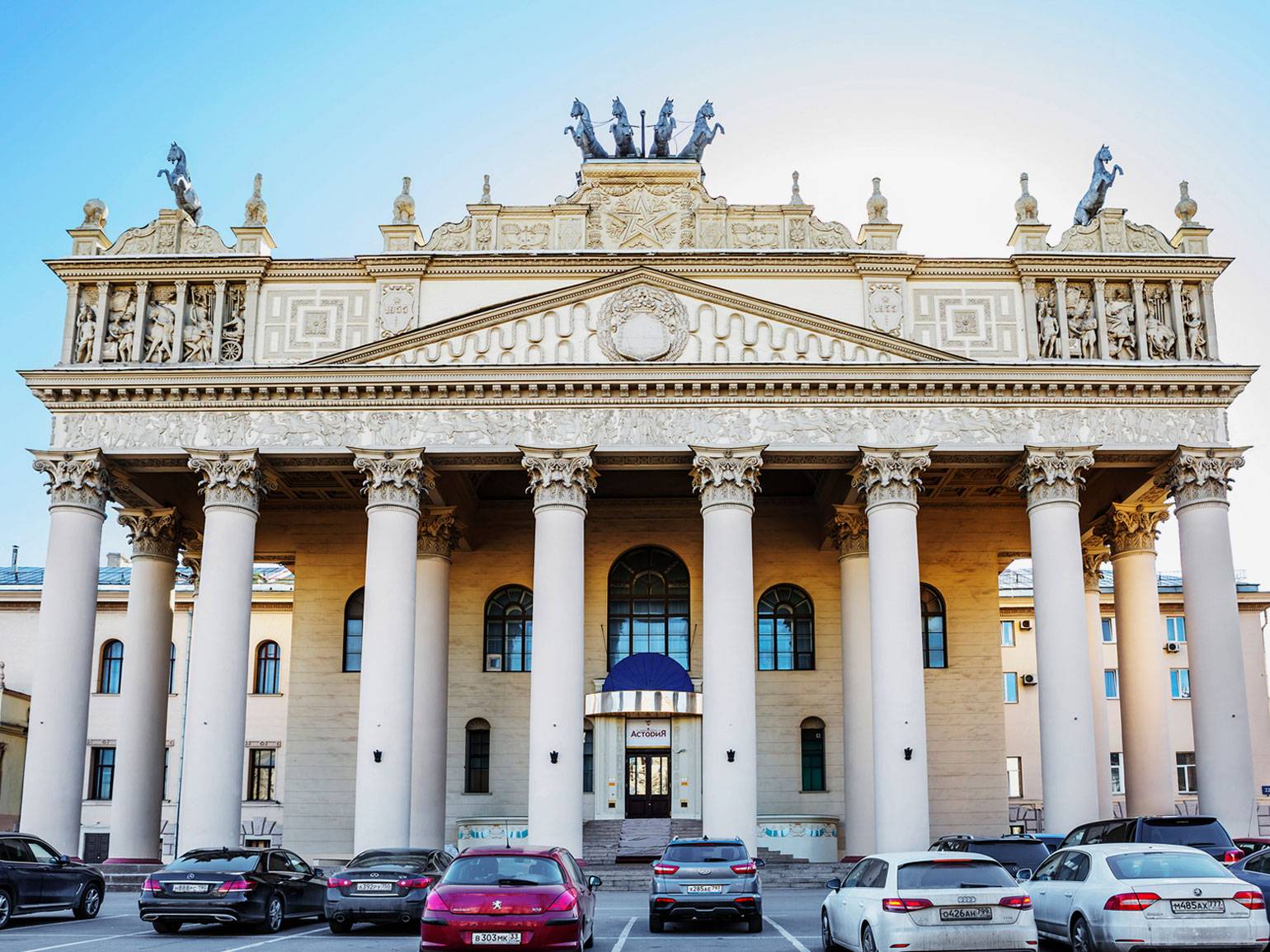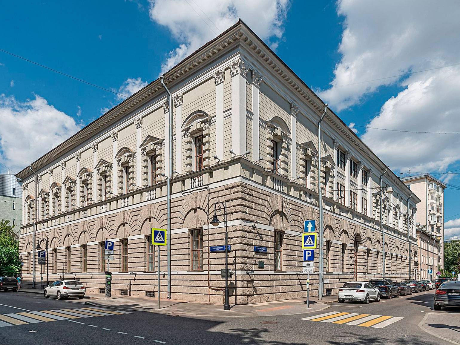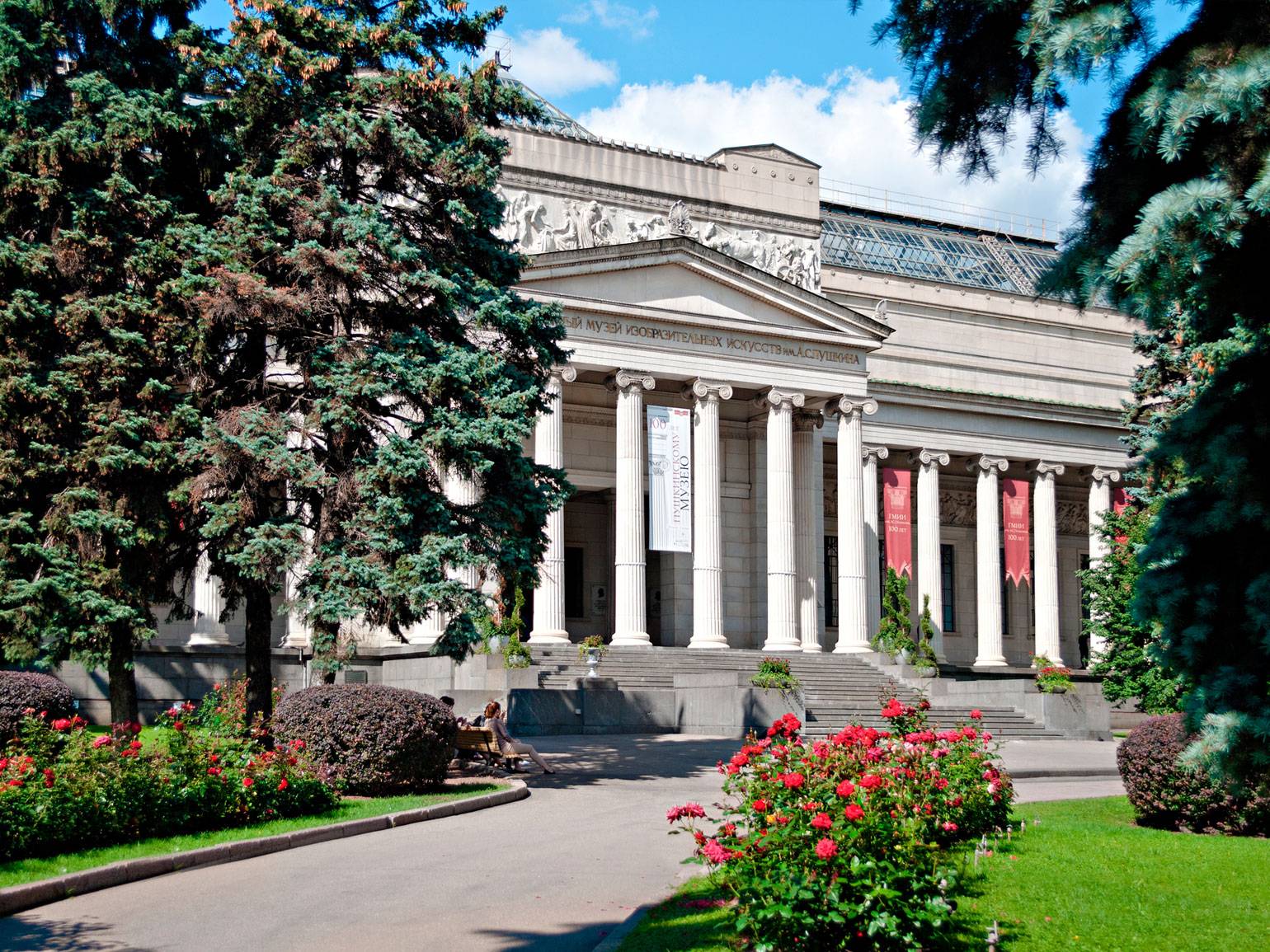 Вершина русского неоклассицизма и самое известное строение — Главное здание Пушкинского музея (1898–1912, архитектор Роман Клейн). Фасад стилизован под античный храм с высоким подиумом, грандиозной ионической колоннадой и скульптурным декором.