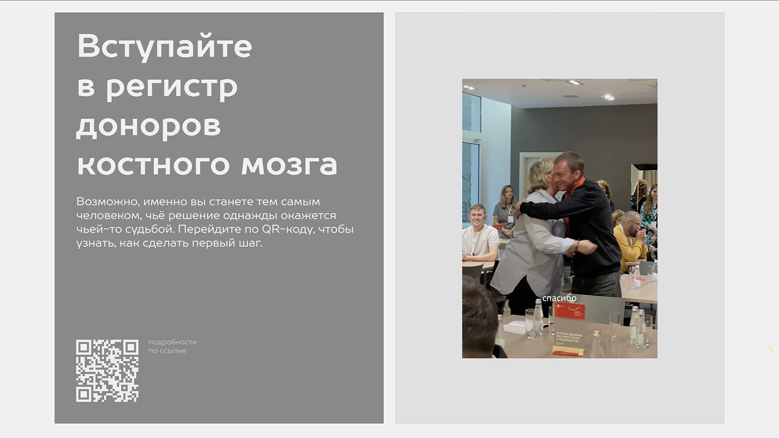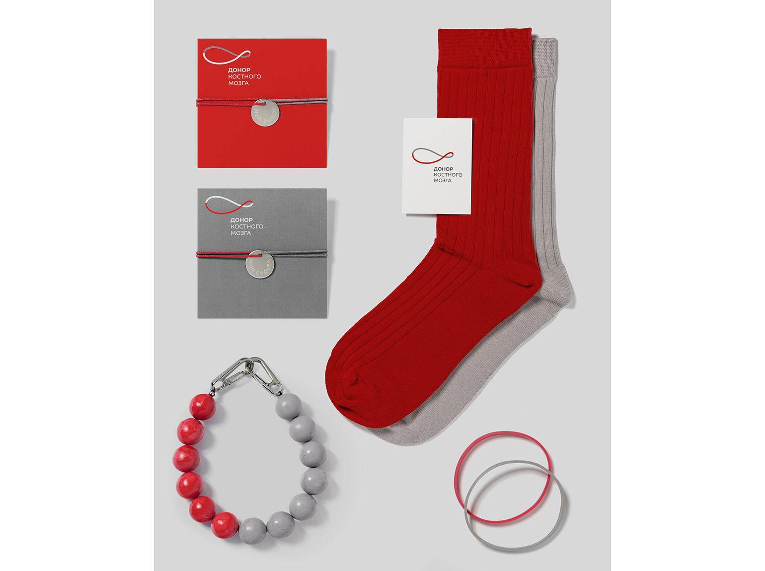 Также в студии создали мерч, который напоминает о сопричастности к важному делу. Для встречи доноров и реципиентов выпустили парные браслеты: красная и серая нити переплетаются, повторяя графику символа. На подвесках выгравированы слова «Мой выбор» и «Моя судьба» — два послания, которые соединяют людей через акт донорства.