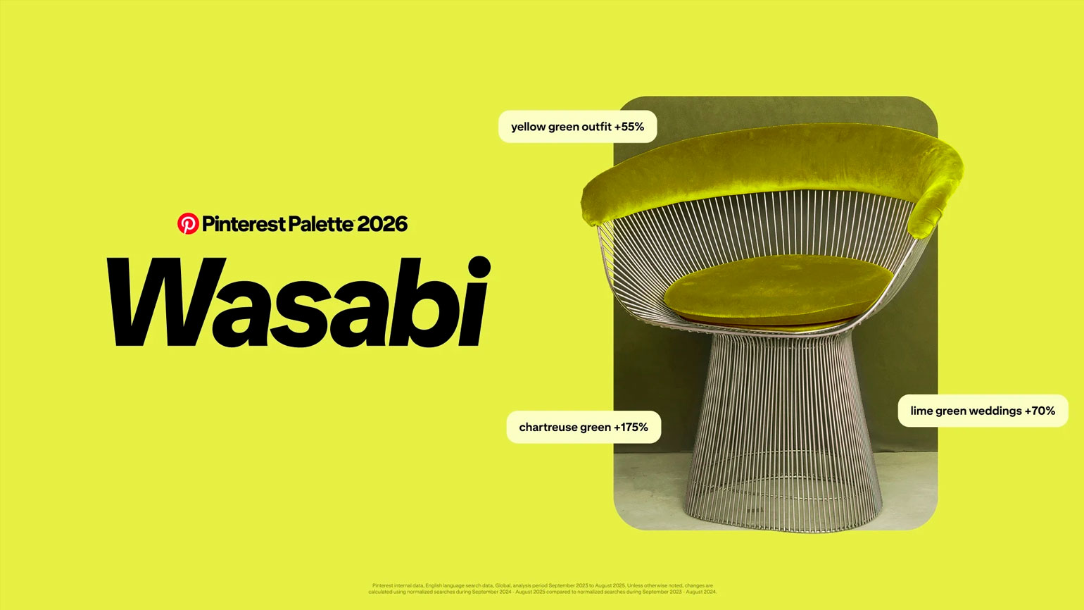 Pinterest представил ежегодную подборку трендовых оттенков. В этом году эксперты платформы выделили пять ключевых цветов, которые, по прогнозам, будут формировать стиль, креатив и культуру на ближайший год: Cool Blue («ледяной синий»), Jade («нефрит»), Plum Noir («тёмная слива»), Wasabi («васаби») и Persimmon («хурма»).