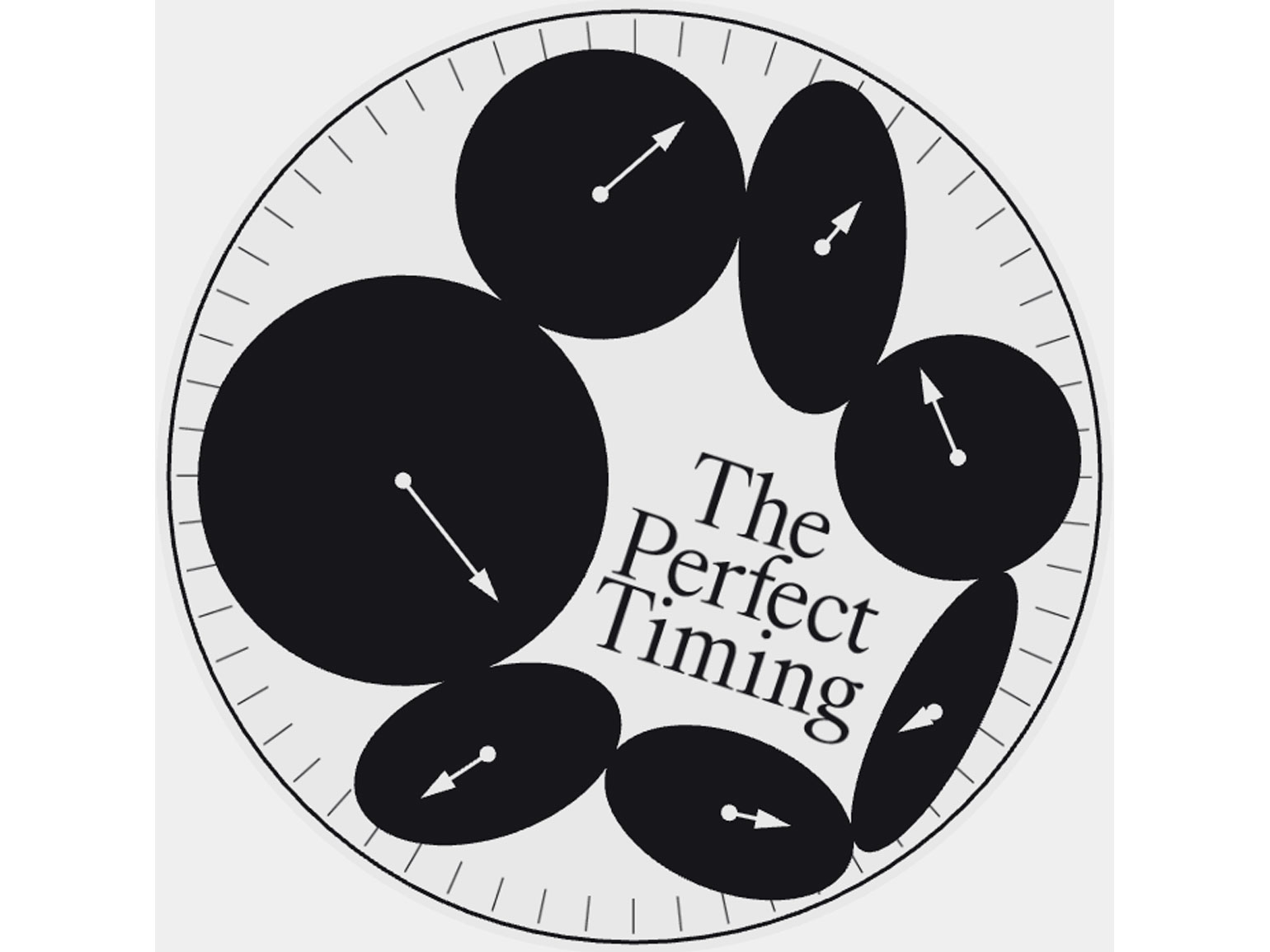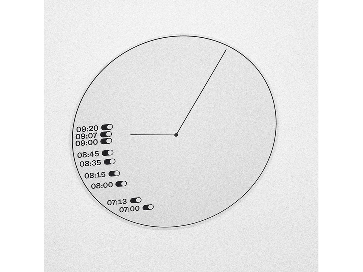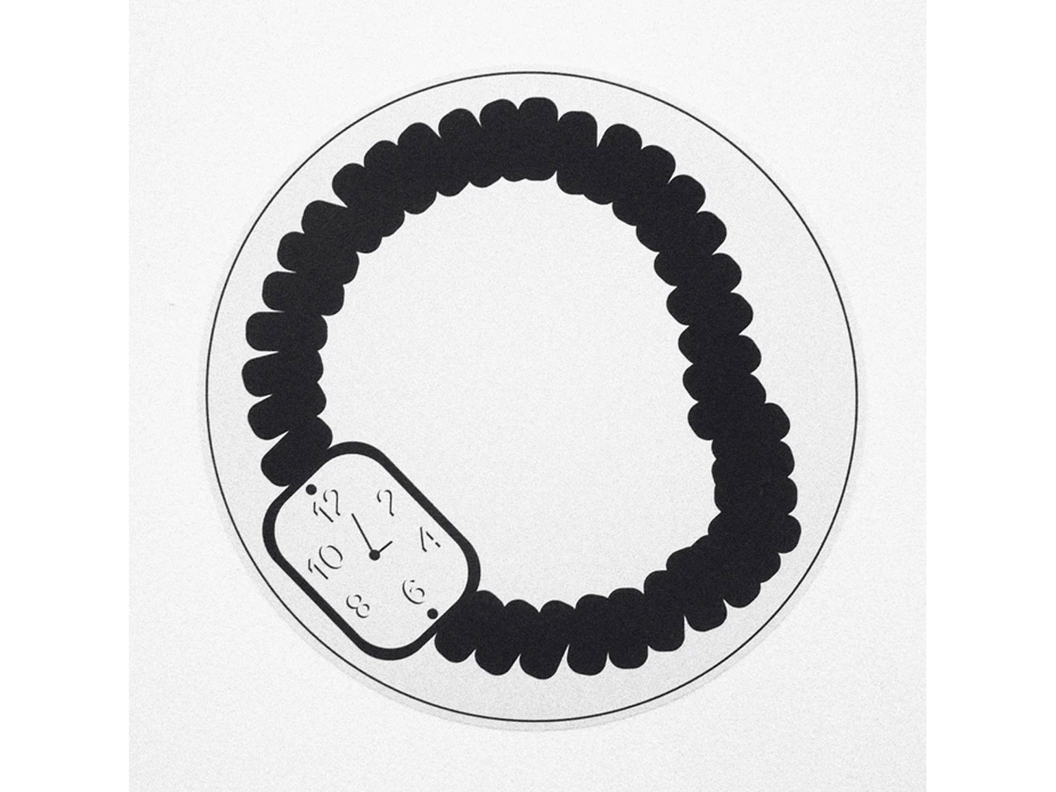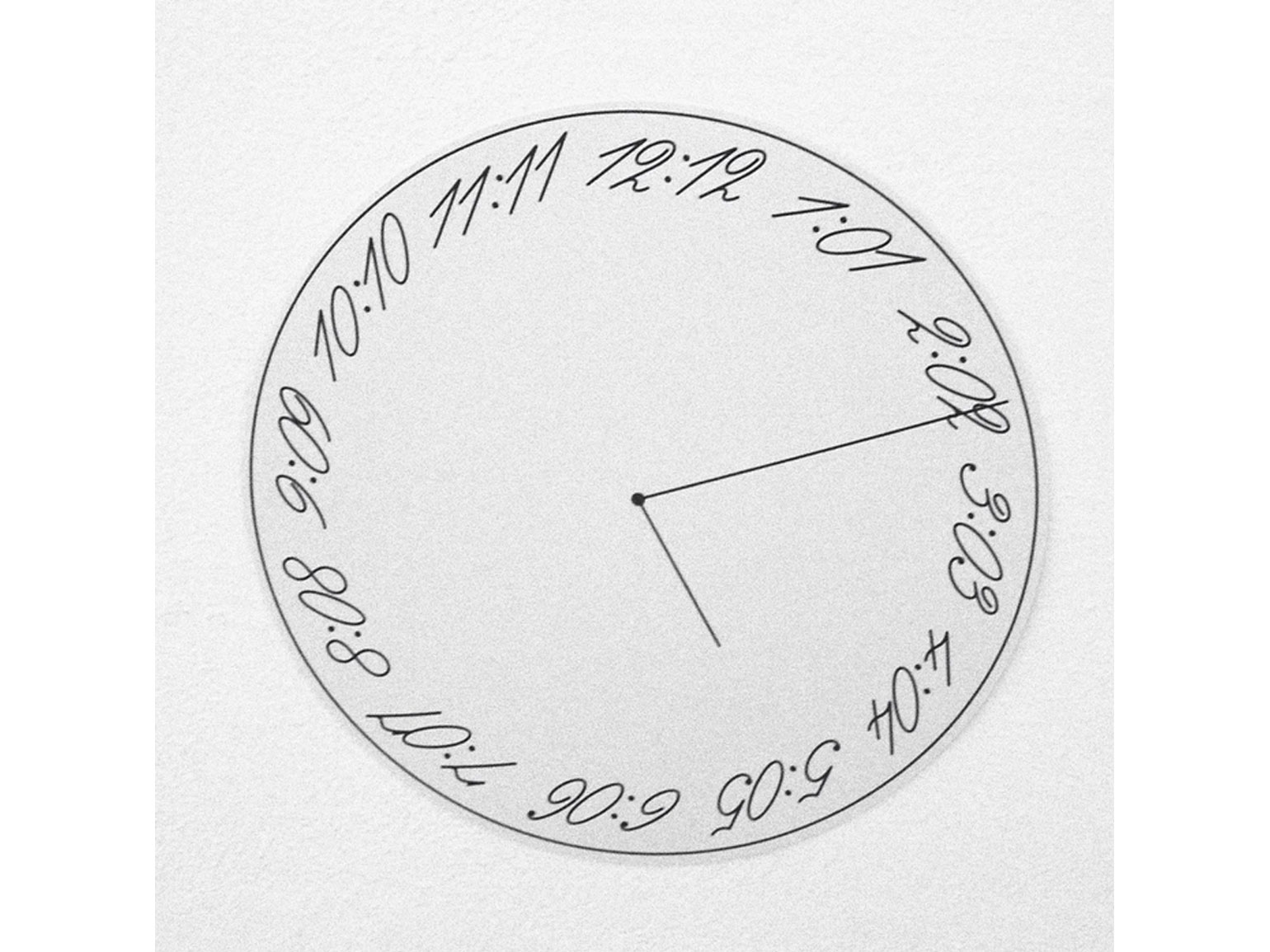 Некоторые экспериментировали не со временем, а с циферблатом. Это тоже одна из формальных, но очень интересных задач. Потому что циферблат — это что-то статичное, понятное. У нас есть круг, у нас есть деления — часы, у нас есть как минимум две стрелки. И что можно с этим сделать?