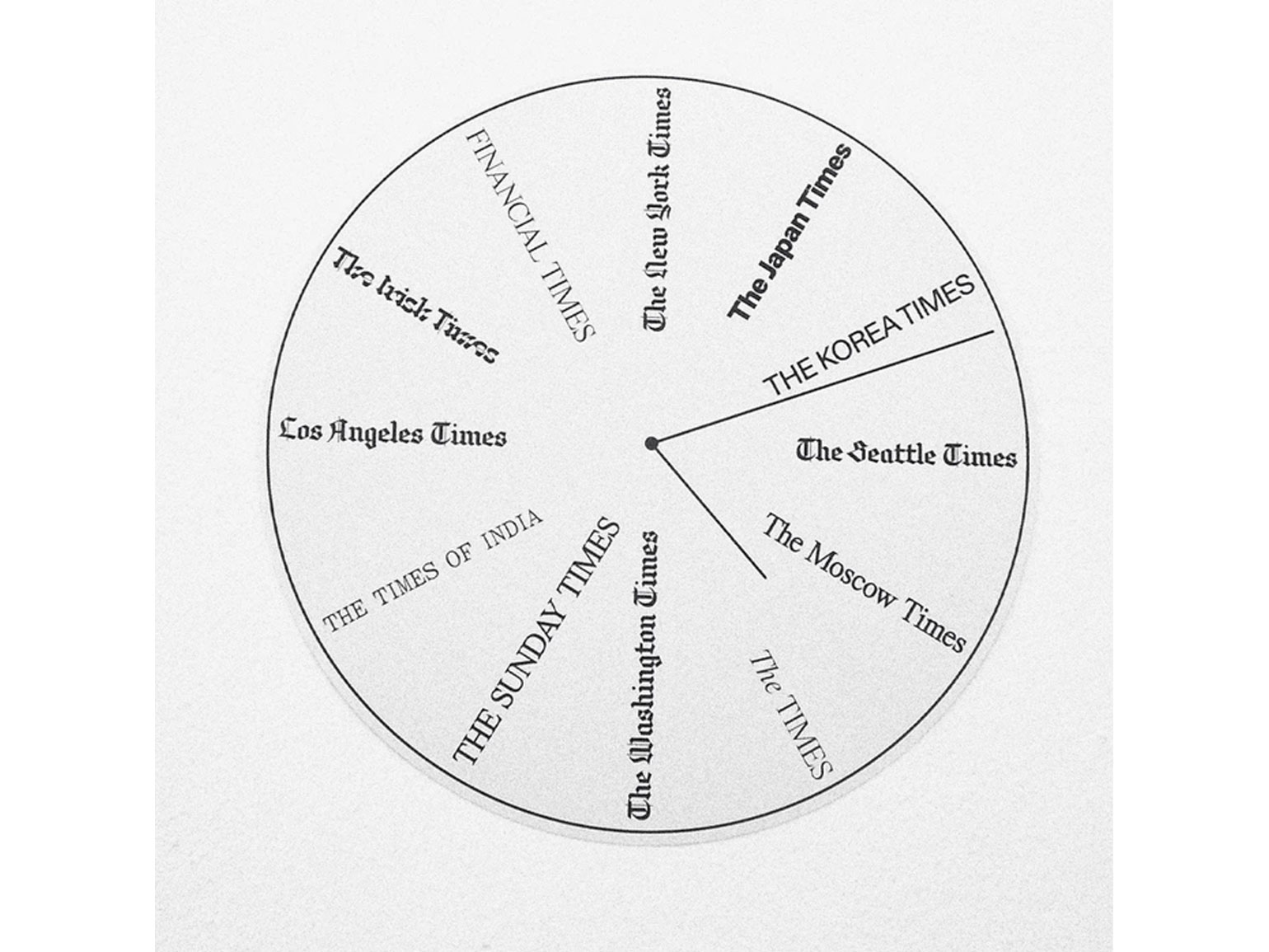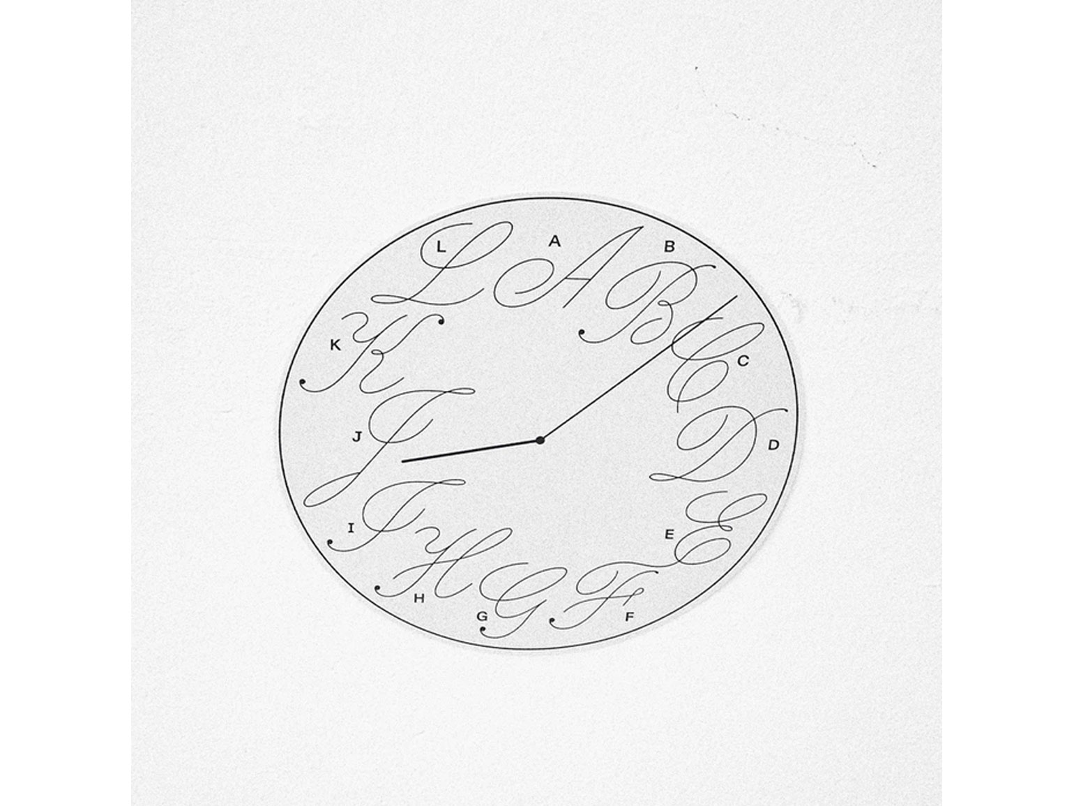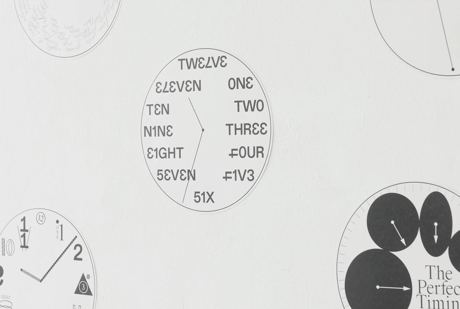 Или формальные поиски: каким был бы циферблат, если бы цифры шли не в хронологическом порядке, а в алфавитном? Это неправильно и иррационально, но что, если бы мы думали про время так?