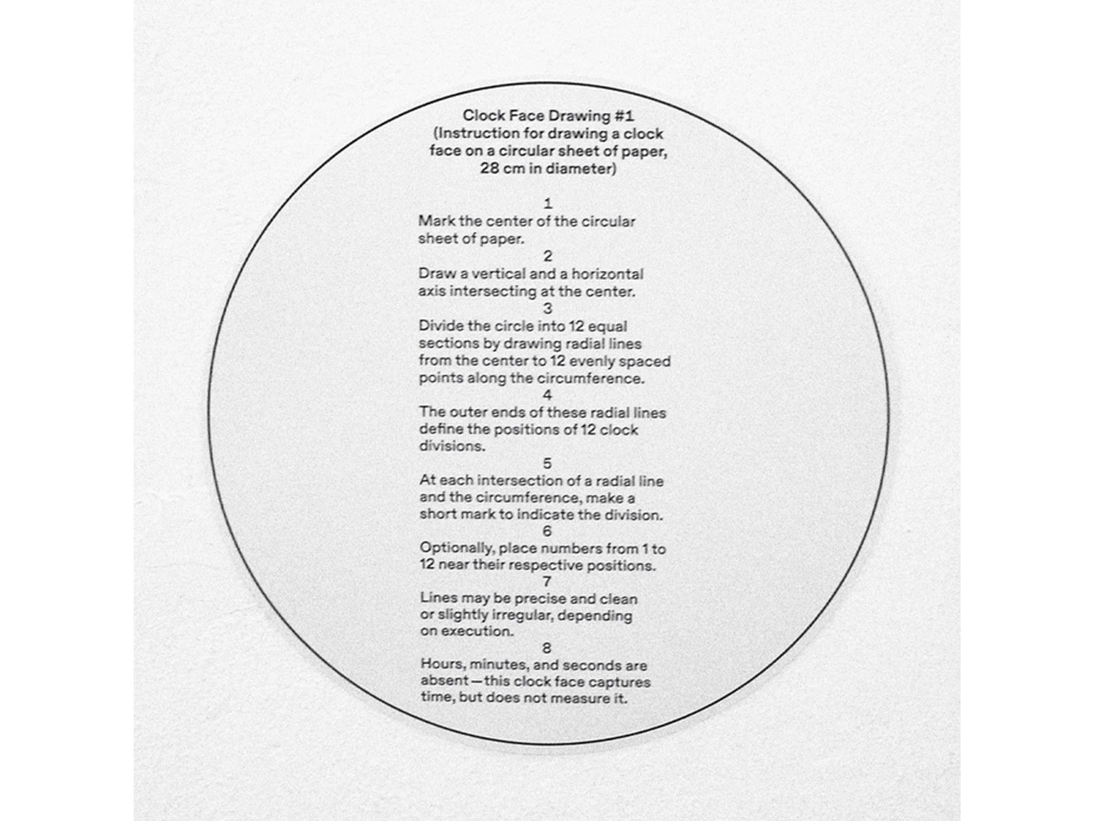 Есть концептуалистские исследования наследия интересных нам художников. Например, есть циферблат — не циферблат, а инструкция, как нарисовать циферблат. Это отсылка к Солу Левитту и его инструкциям для его настенных картин.