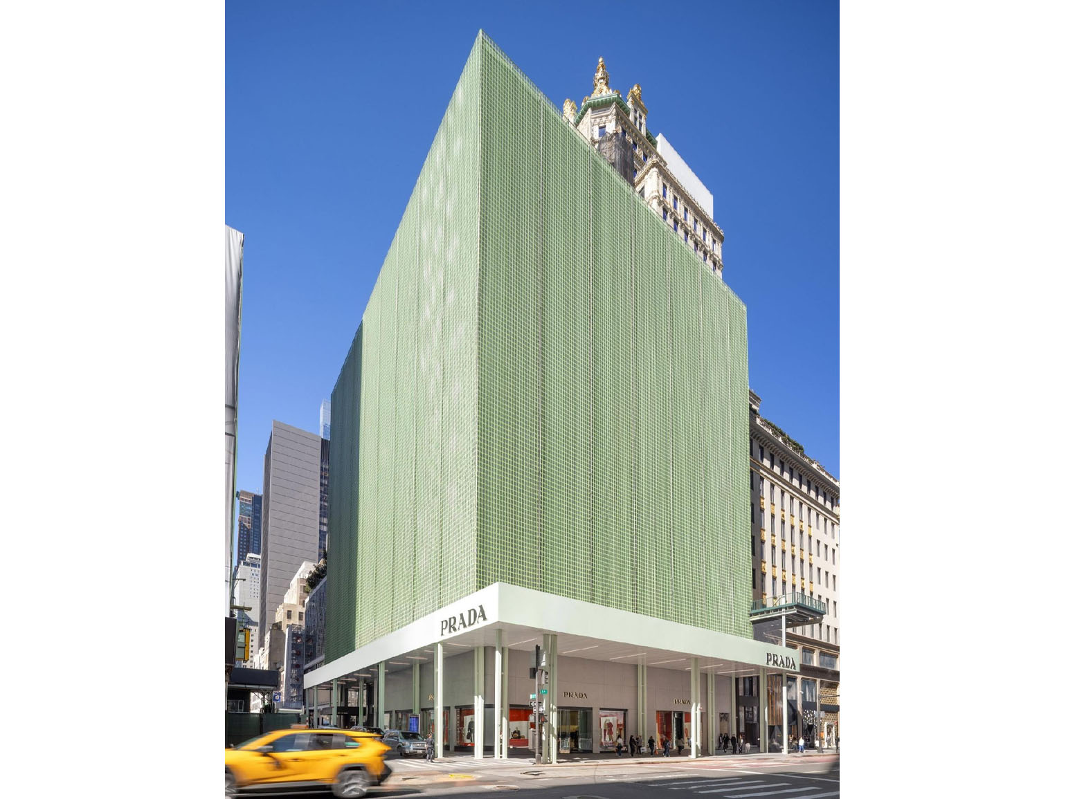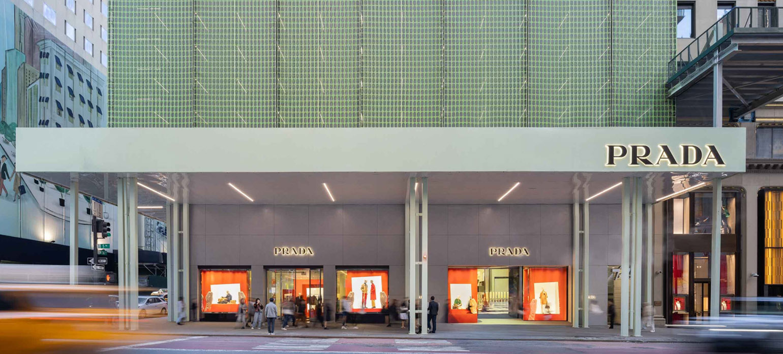 В студии «2×4» отмечают, что задачей было не скрыть ремонт, а, наоборот, интегрировать его в городской контекст: «Вместо того чтобы прятать строительство, мы используем его как возможность выразить эстетику Prada. Леса становятся не экраном, а продолжением бренда — частью визуальной ткани города».