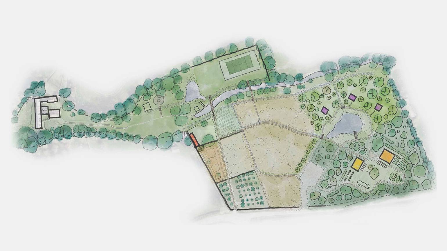 На основе анализа появляется общая идея пространства — как оно будет выглядеть и работать. Специалист определяет функциональные зоны (детская, тихий отдых, спорт, прогулки с собаками, событийная площадь…), их взаимосвязь и какие они могут создать ограничения.